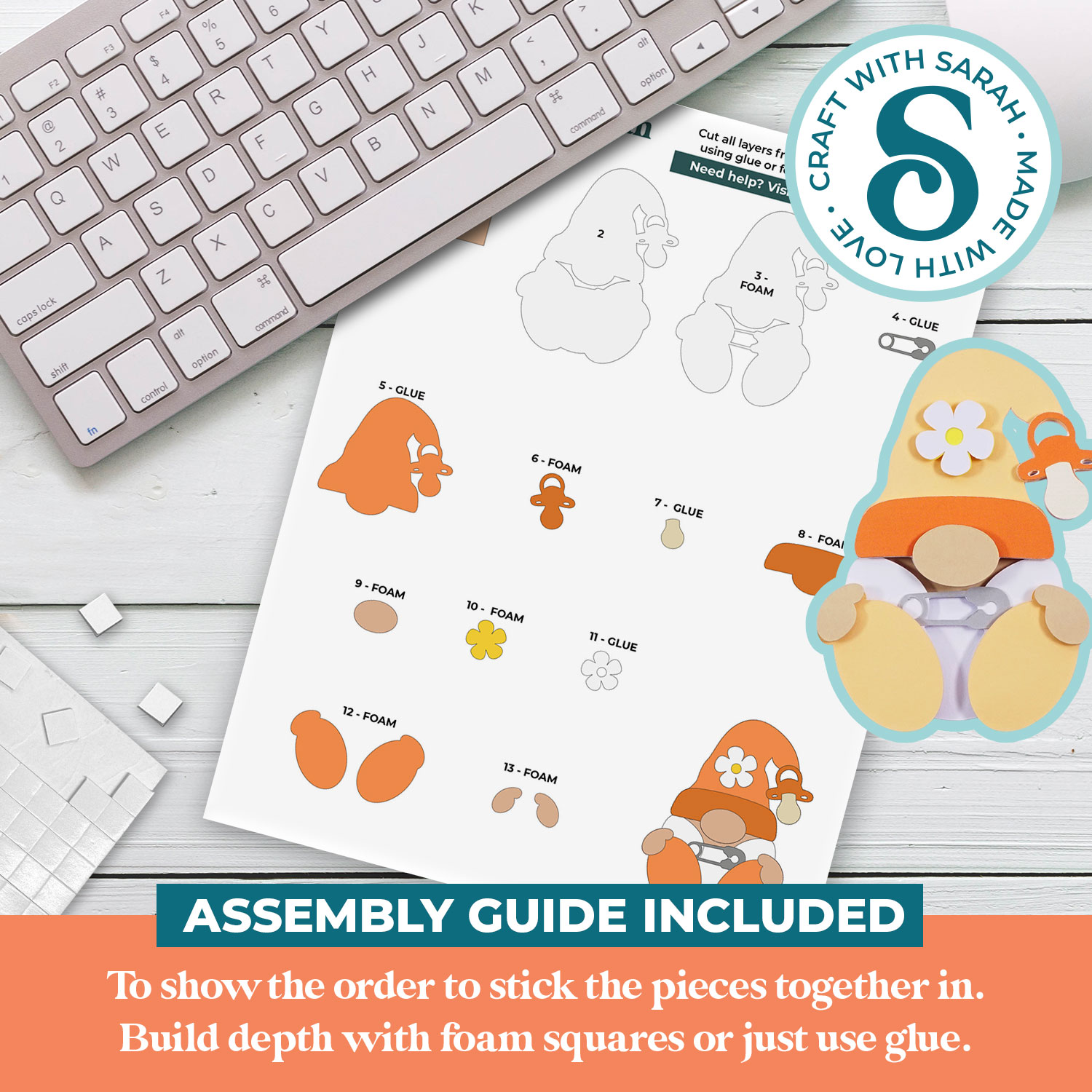 A layered cutting file of a baby gnome, part of a whole family portrait series.