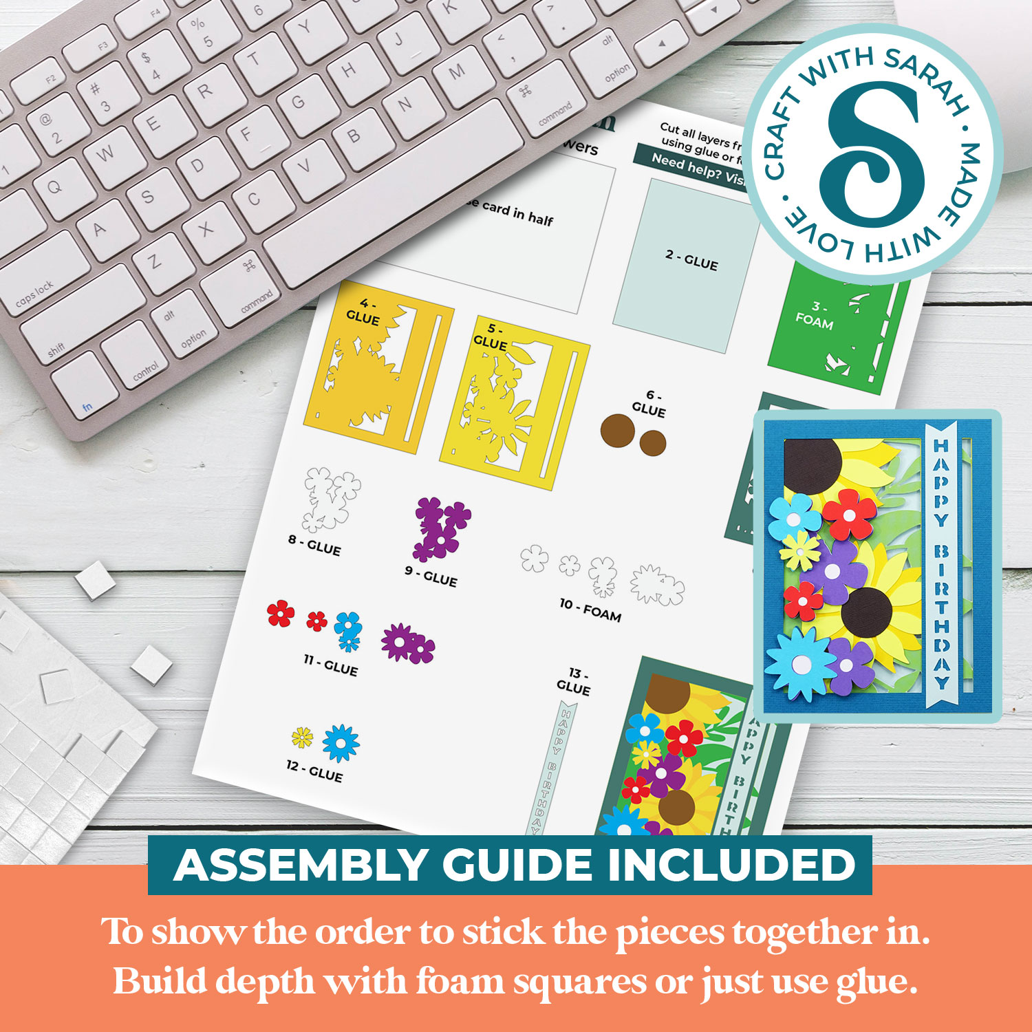 This greetings card comes with an assembly guide that shows the order to stick the pieces together in.