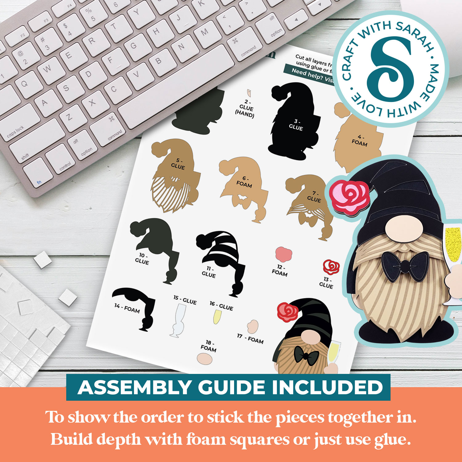 The Countdown contains 32 layered gnome SVGs covering a wide range of themes, plus 14 additional family portrait gnomes and 14 side-edge cards, making 60 adorable gnome SVGs in total!