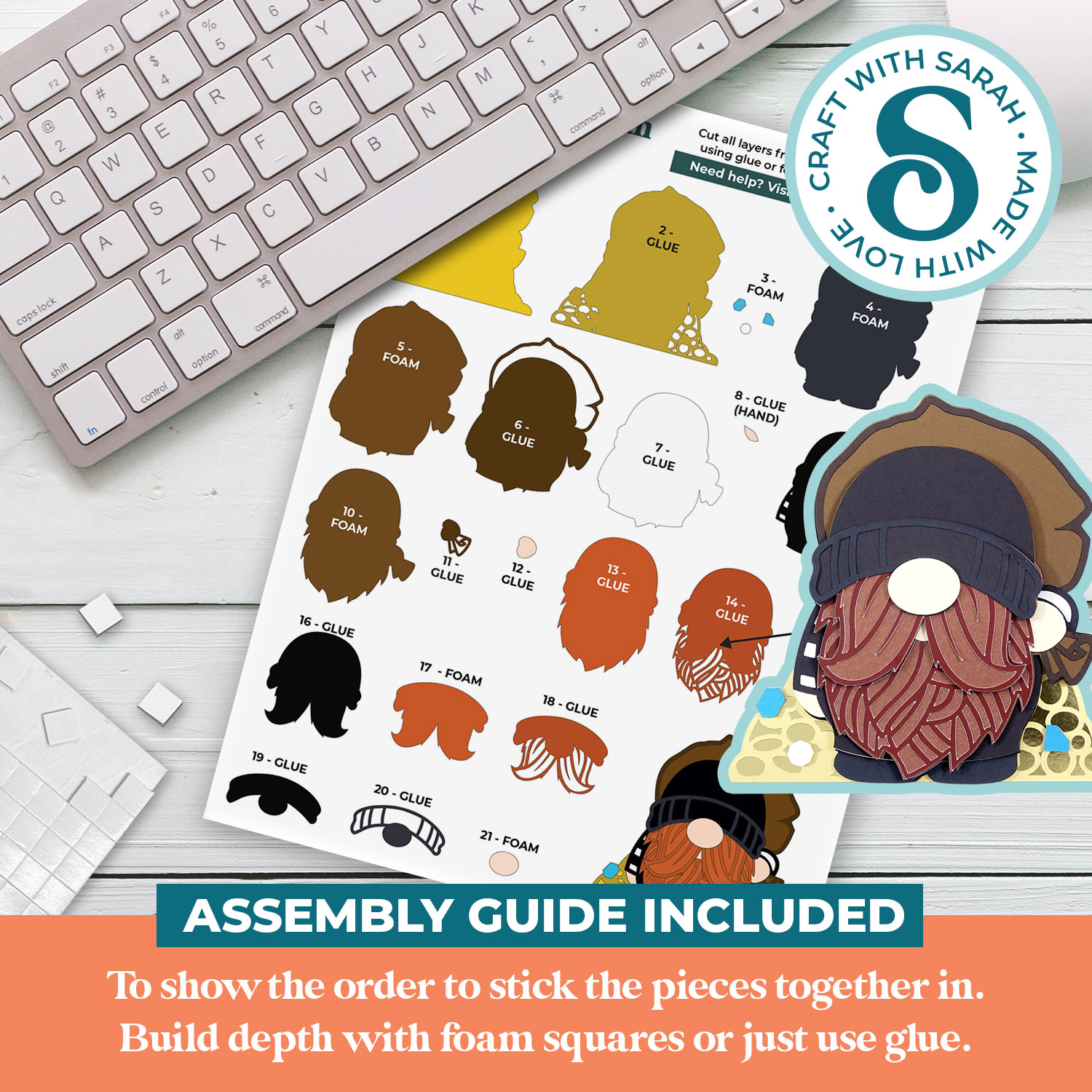 The Countdown contains 32 layered gnome SVGs covering a wide range of themes, plus 14 additional family portrait gnomes and 14 side-edge cards, making 60 adorable gnome SVGs in total!