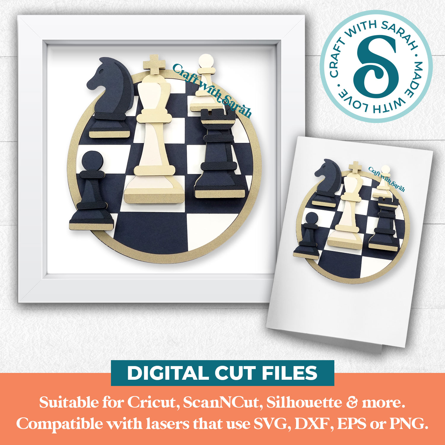 A layered cutting file of a chess piece scene.