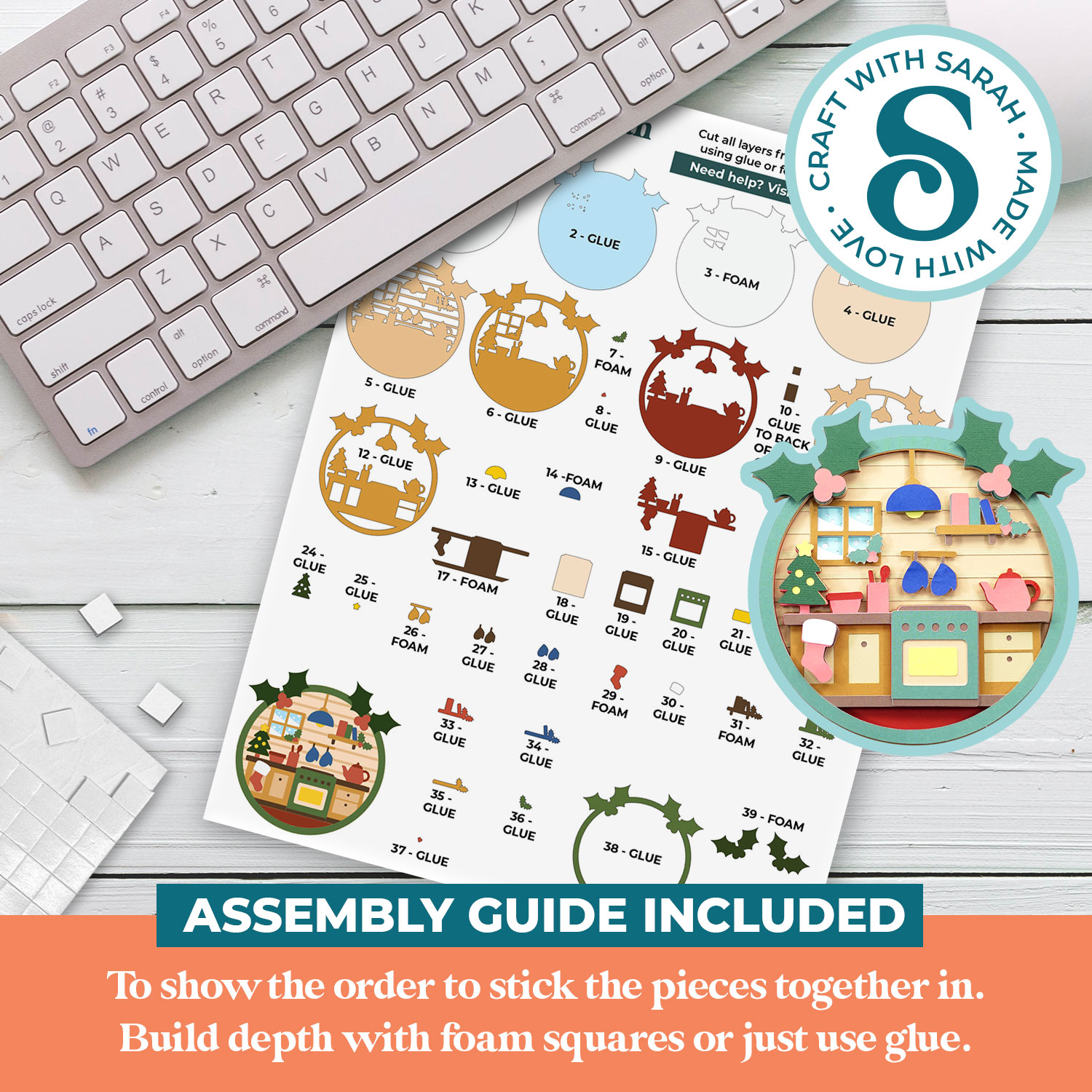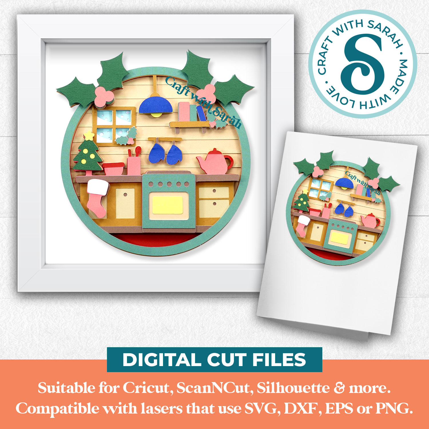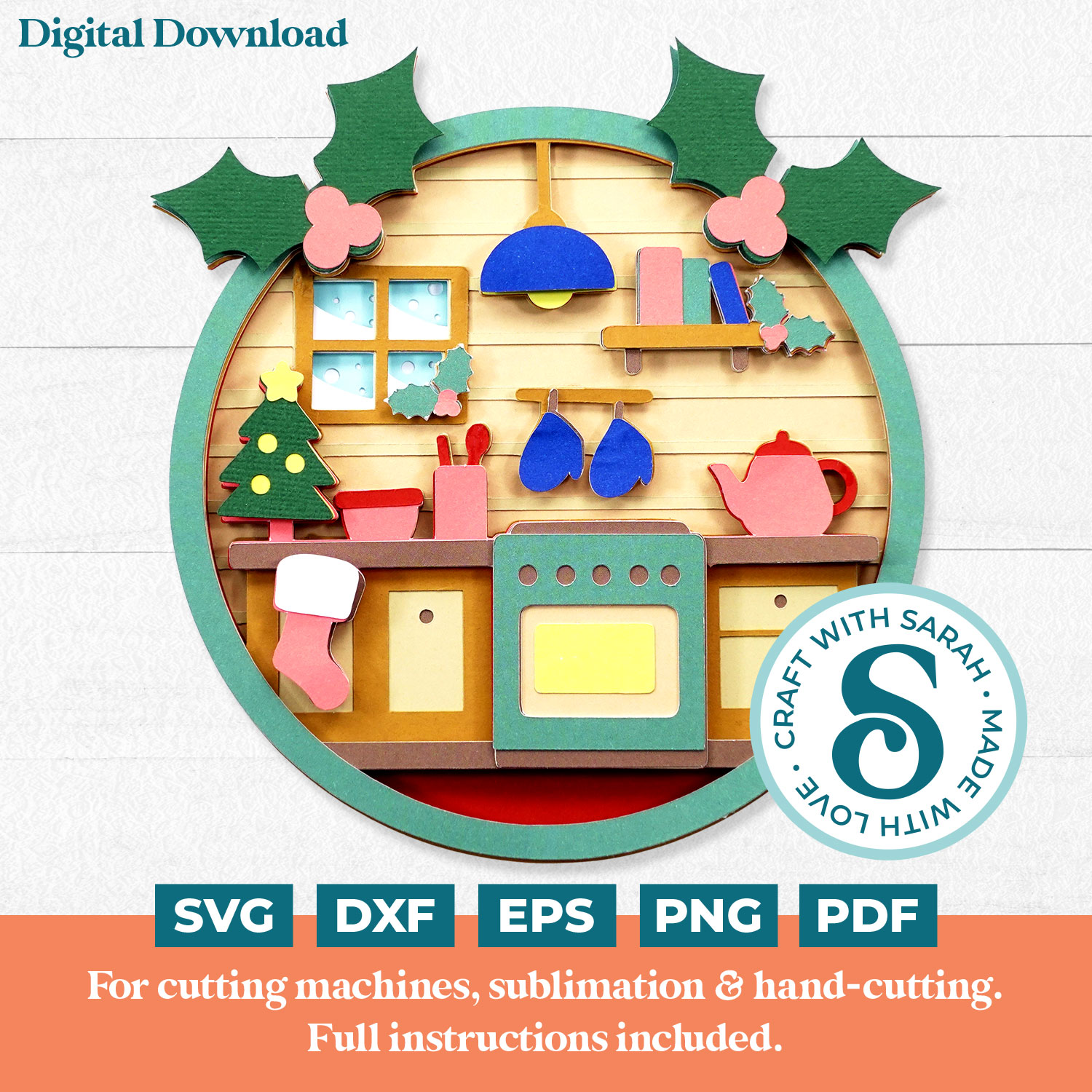 This kitchen cutting file shows a beautiful, festive kitchen before all the hard work making Christmas pudding and fruit cake takes place.
