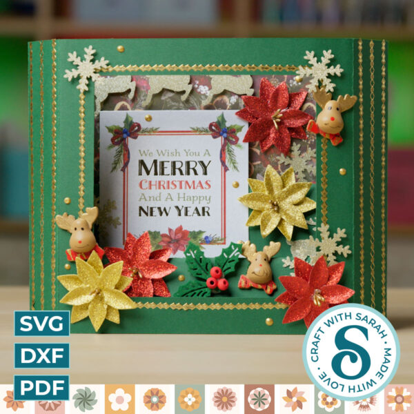 These files are for a “blank” card template – it does not contain the poinsettia flowers or any of the other decorations.