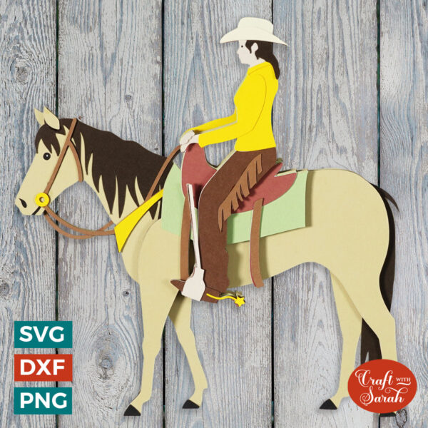 This horse SVG shows the cowgirl riding her horse. The horse is ready to take on the long journey.