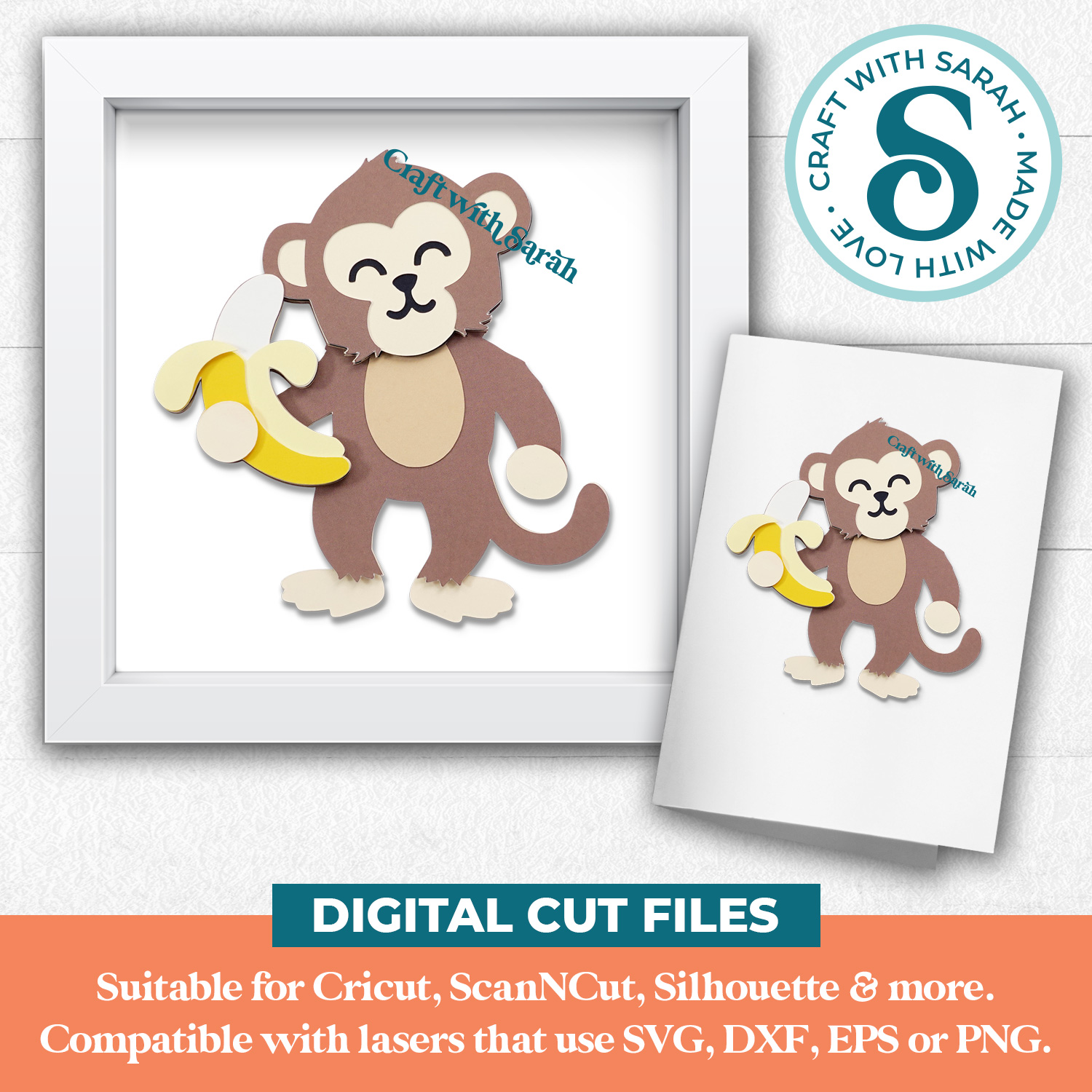 A cute monkey layered SVG, designed for cutting from cardstock.