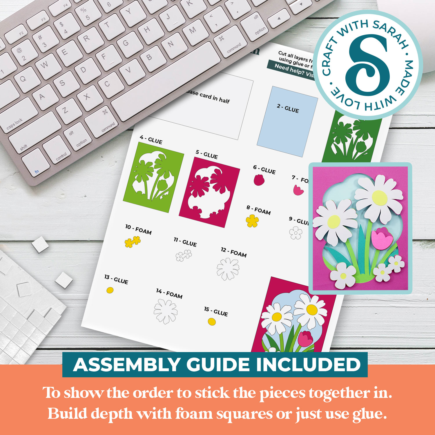 This greetings card comes with an assembly guide that shows the order to stick the pieces together in.