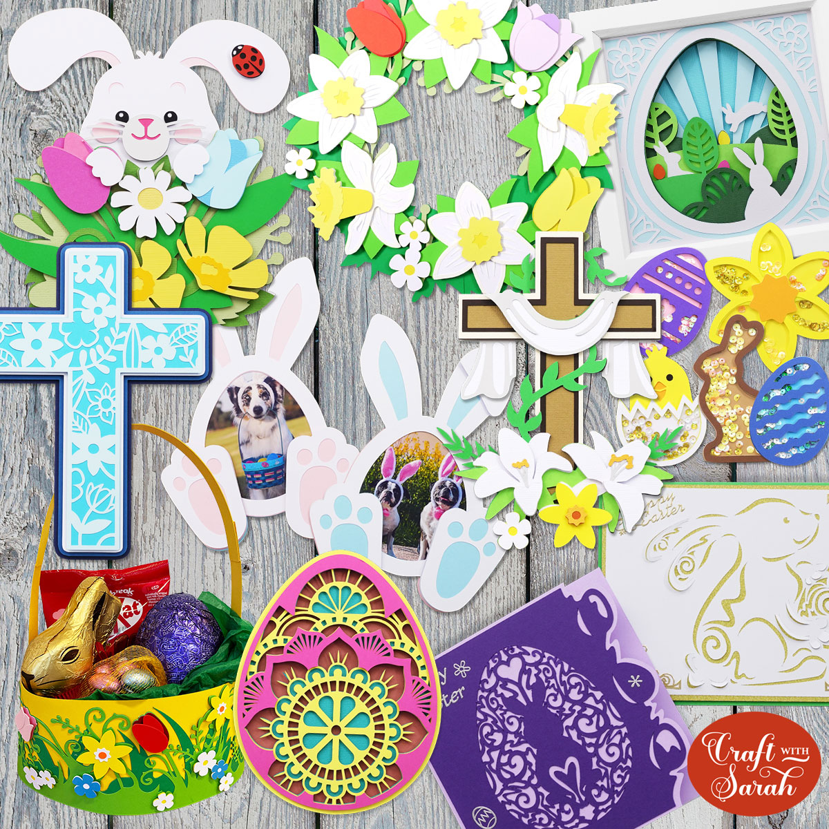 Choose from cut files including layered SVGs, greetings cards, shadow boxes and chocolate egg holders. You won’t know which project to start first!