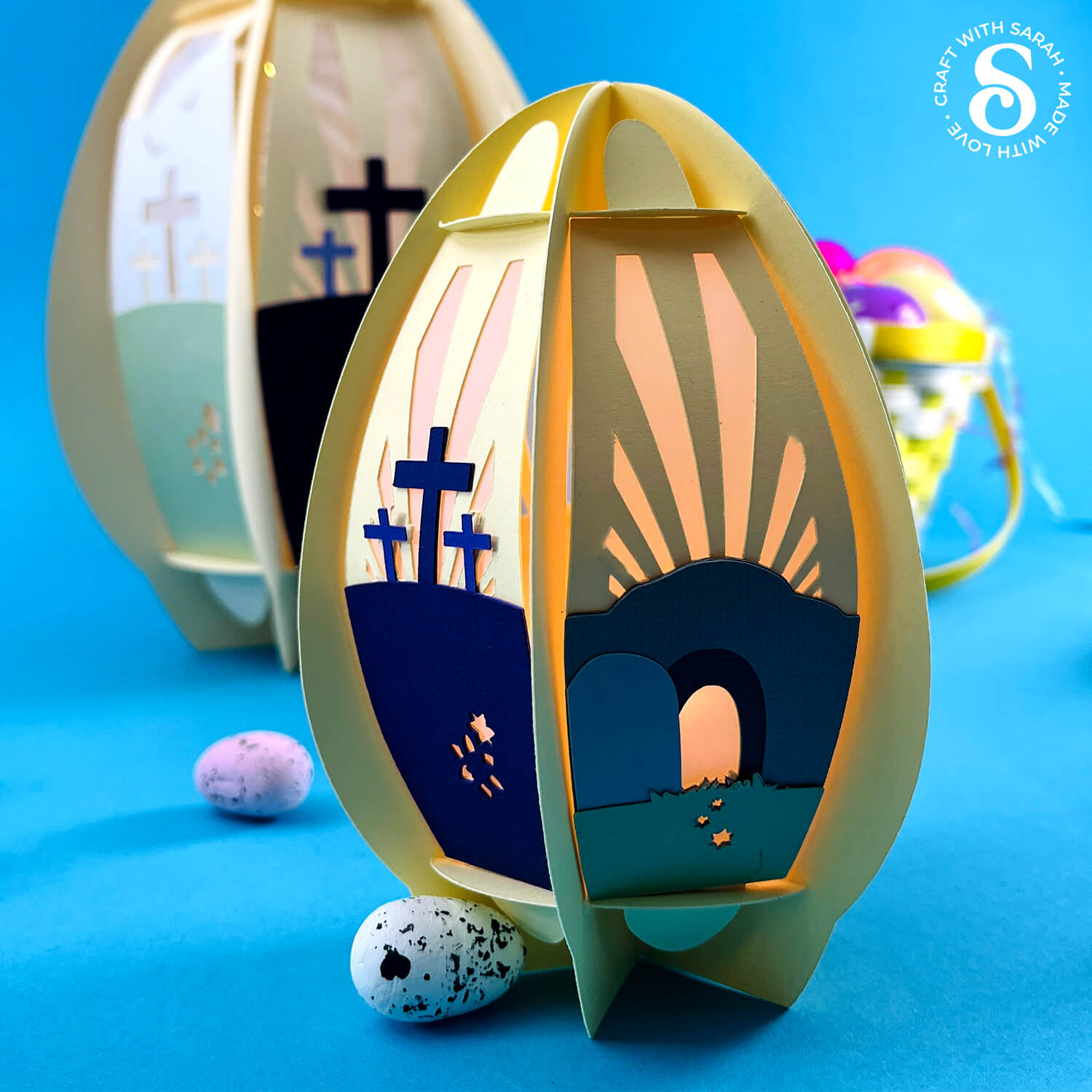 A 3D slot-together egg lantern showing the Easter story.