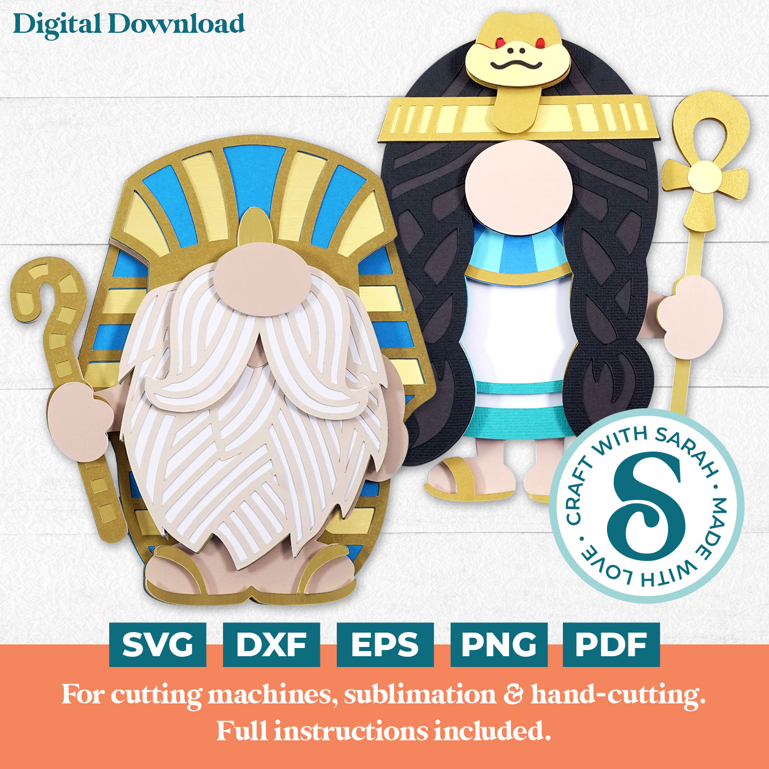 A matching male and female pair of gnome cutting files with an Ancient Egyptian Pharaoh theme.