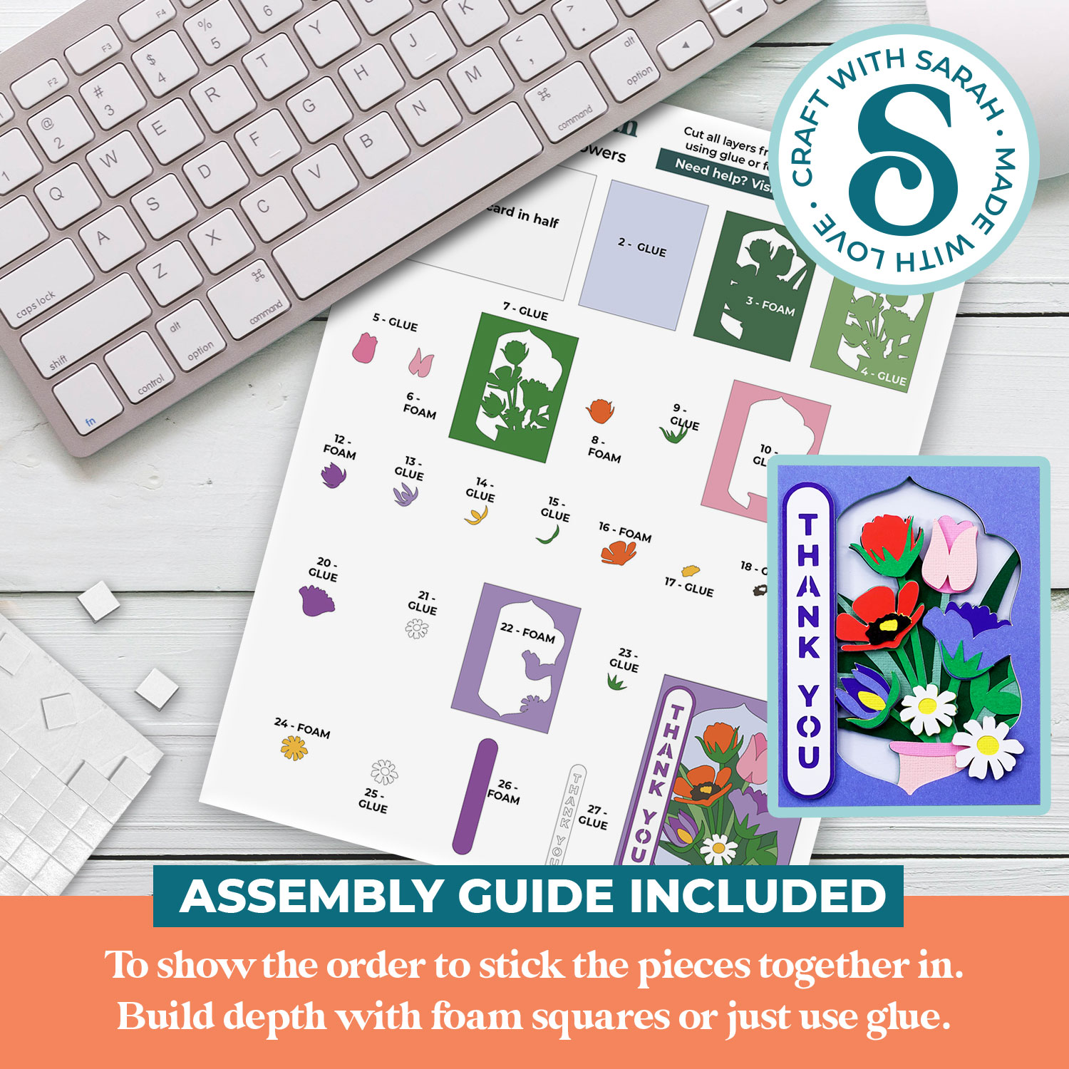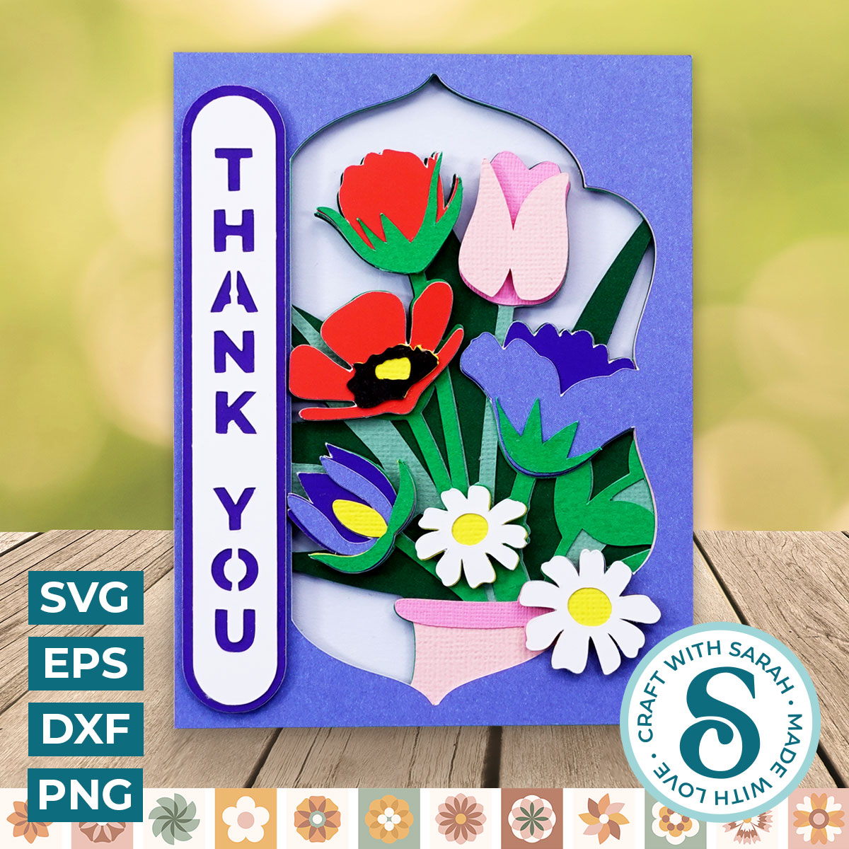 A layered cutting file to make an A2 thank you card with a floral theme.