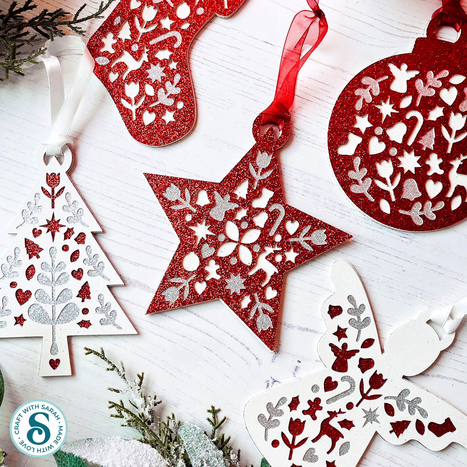Inspired by the Nordic folk art style, these ornament designs feature delicate picture cutouts that look beautiful hung on a Christmas tree, or even tied onto a Christmas present as an extra-special gift tag.