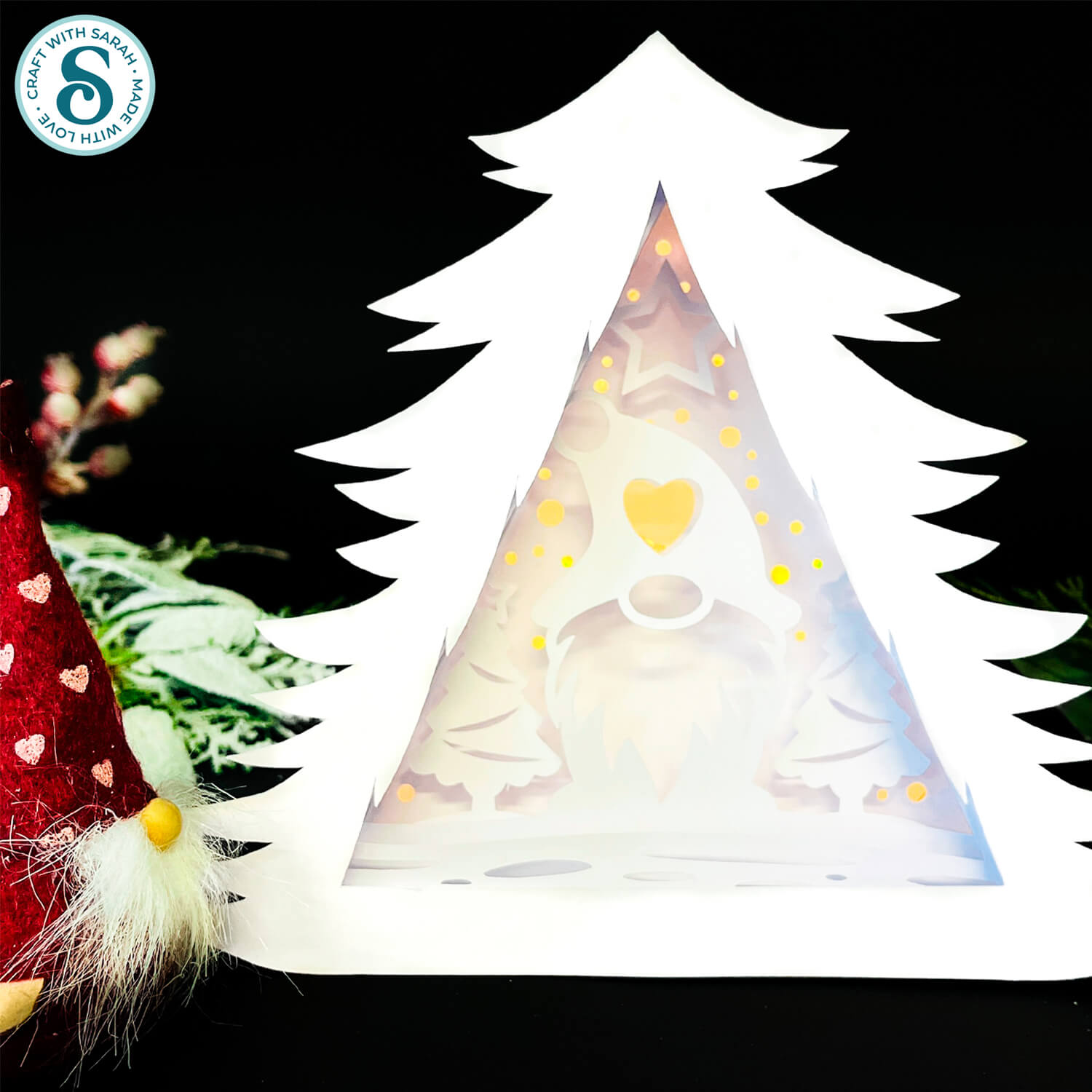 Make a gnome shadow box with a difference with this freestanding tree-shaped design.