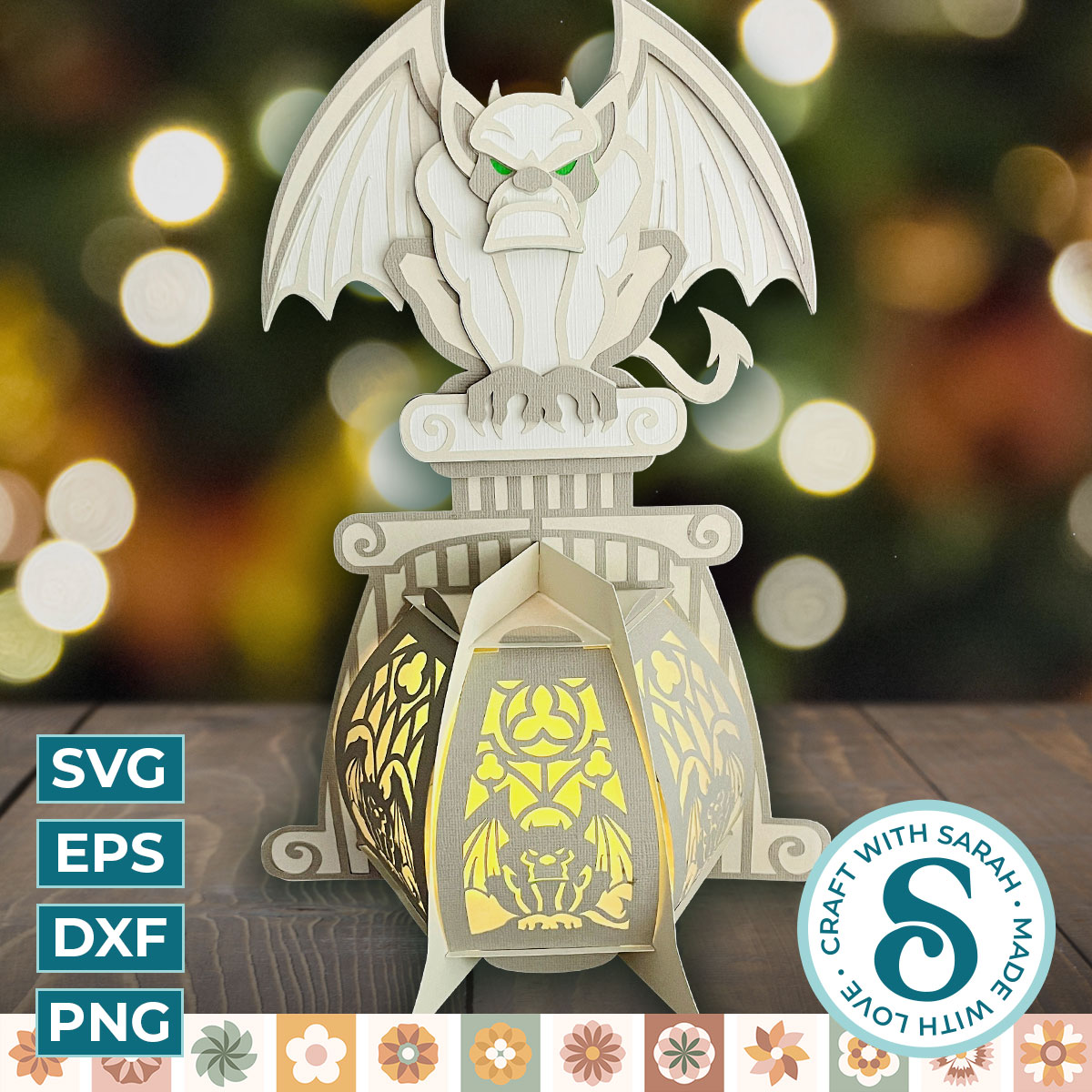 A 3D base lantern with a gargoyle design, perfect for Halloween.