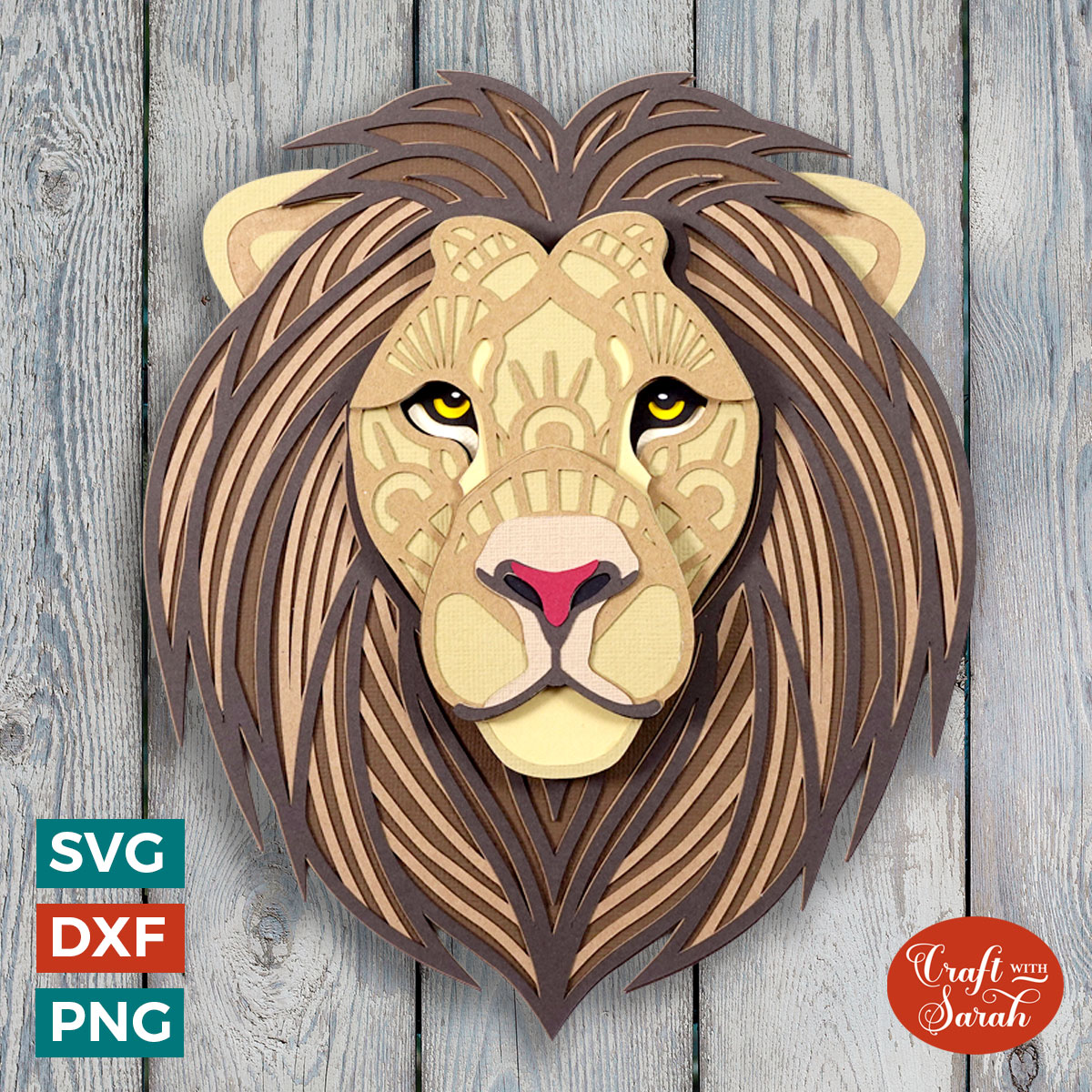 A layered cutting file of a lion mandala head.