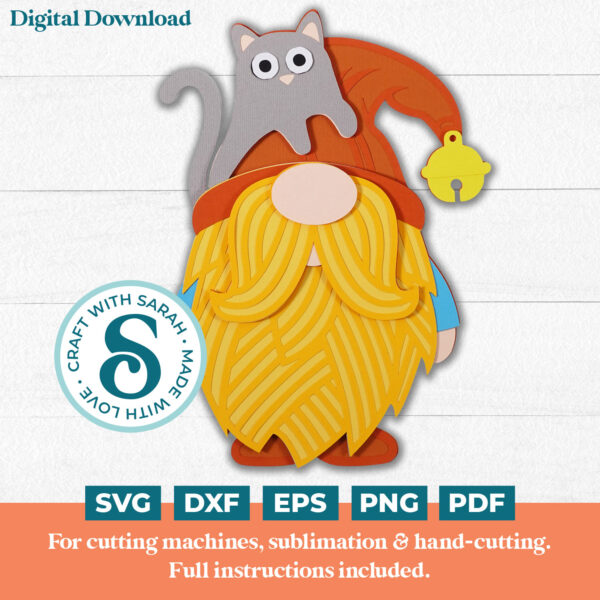 A layered cut file of a male cat lover gnome.