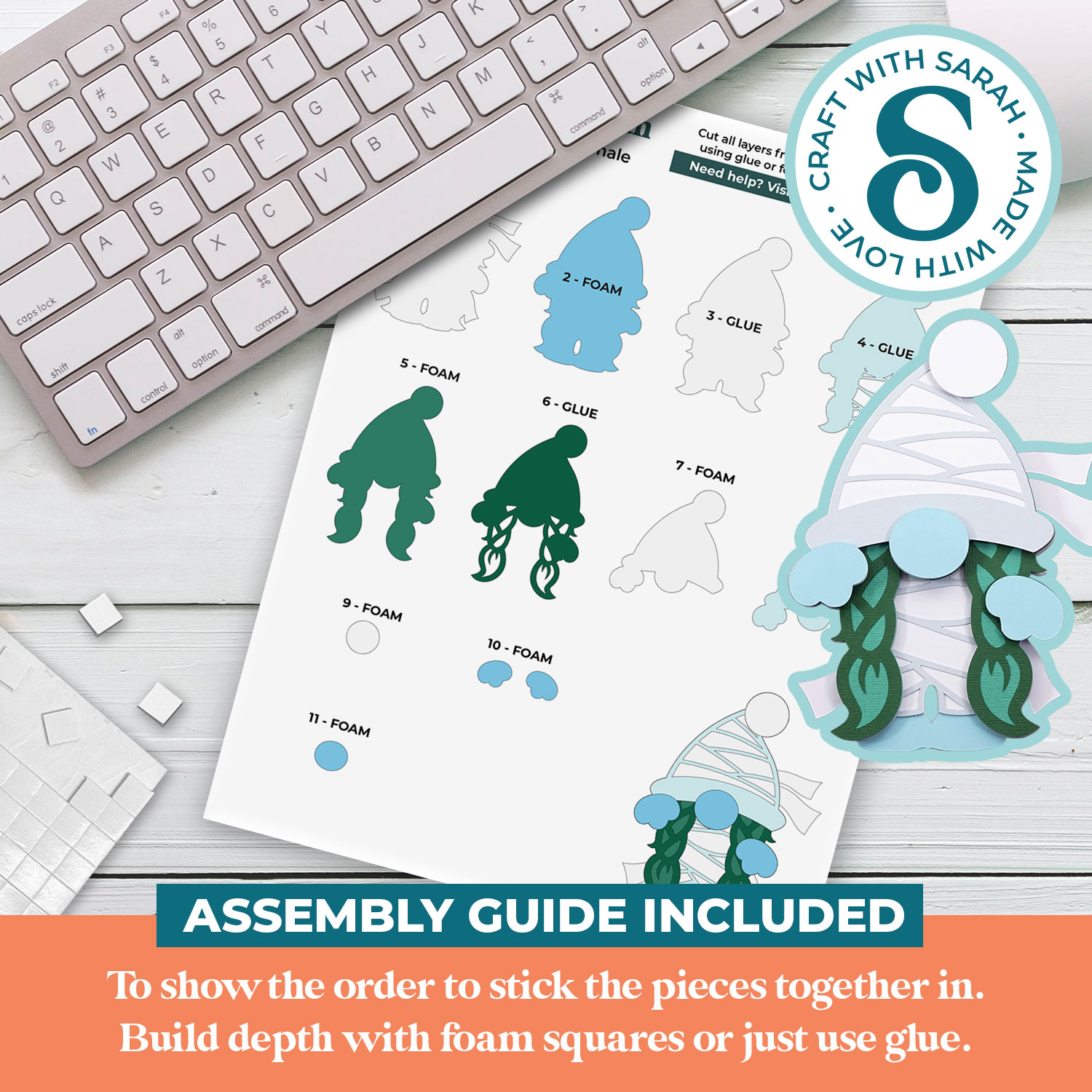 Printable PDF versions are included for hand-cutting, with each layer/piece shown separately on the pages. A black and white version and a full-color version of the hand-cutting templates are included.