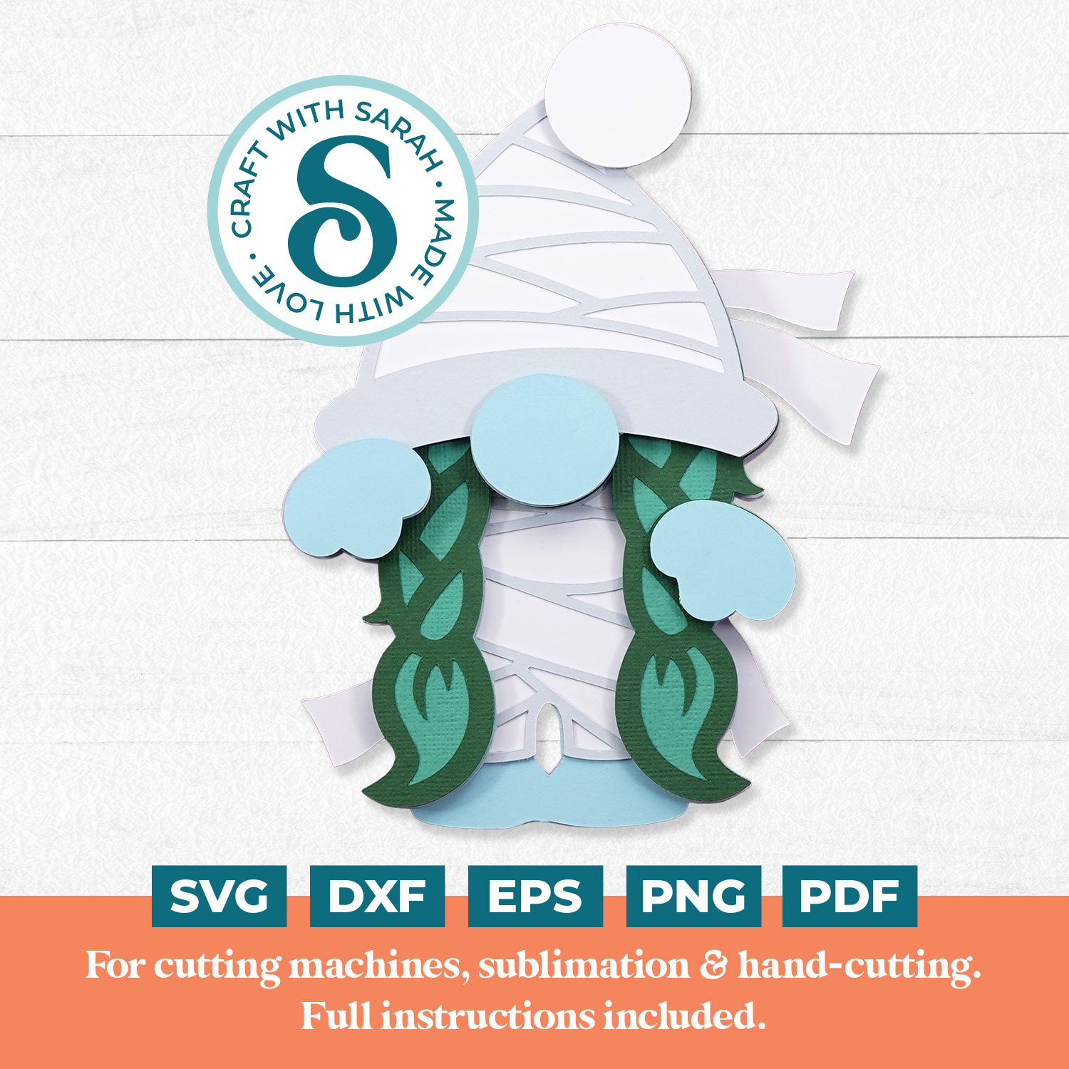 A layered SVG of a female Halloween gnome dressed as an Egyptian mummy with bandages.