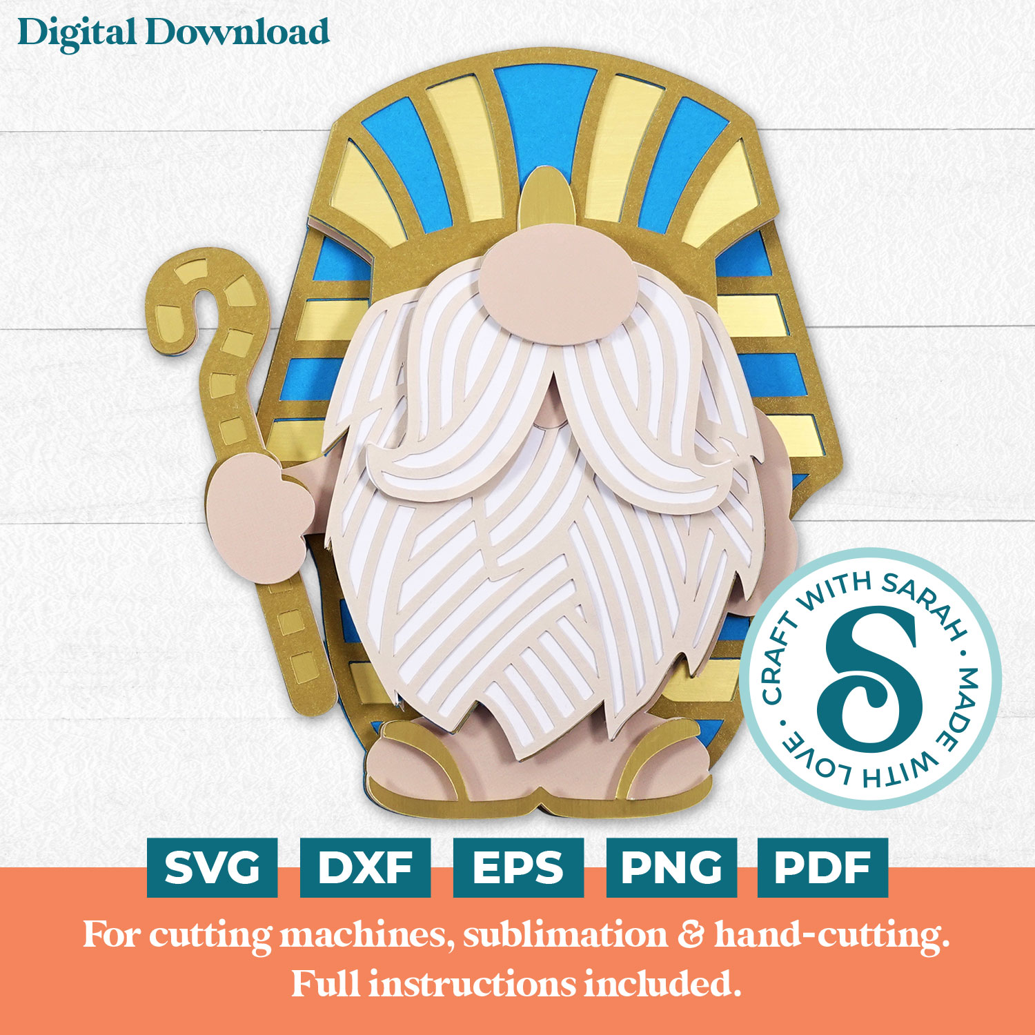 A layered cutting file of a male Ancient Egyptian Pharaoh gnome.