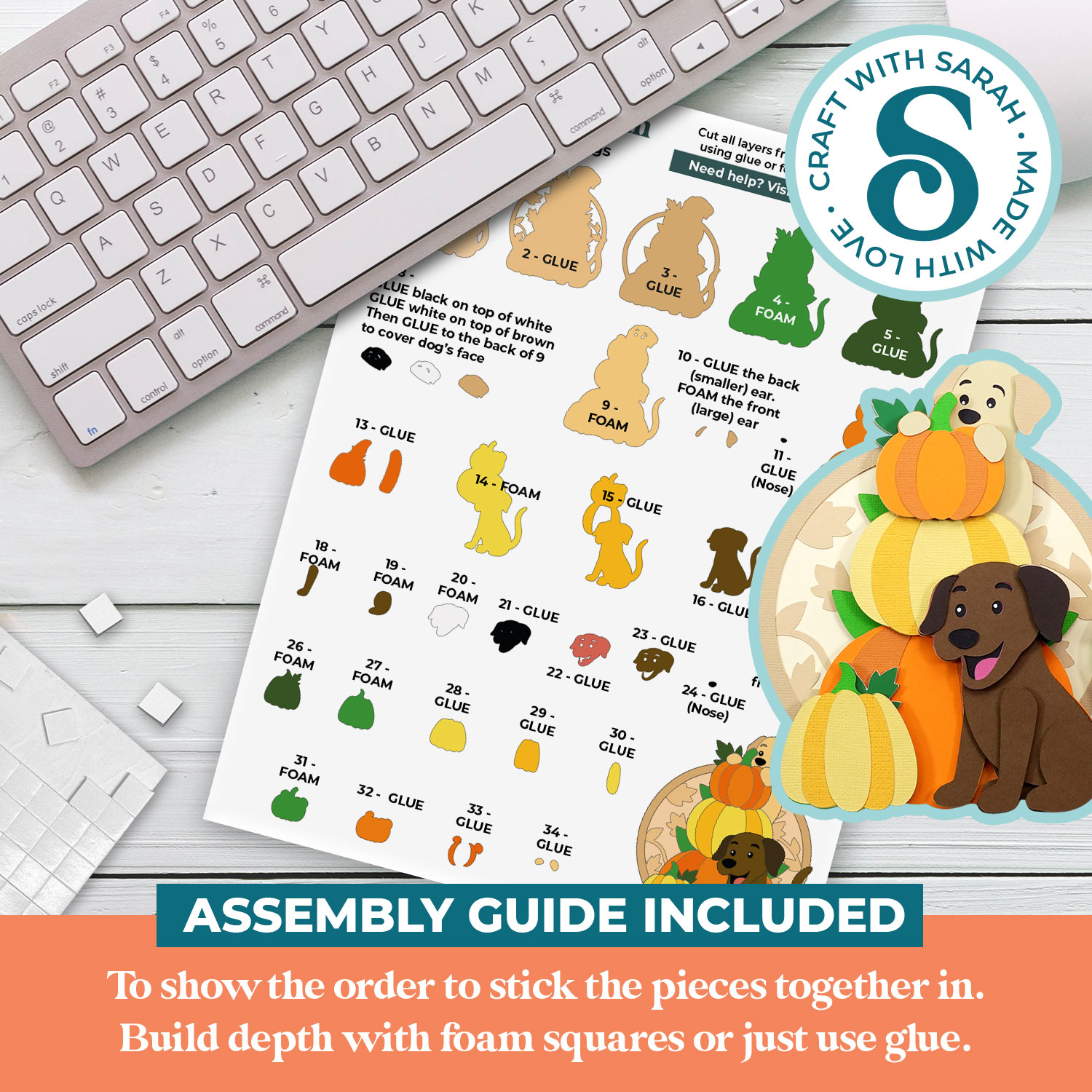 Printable PDF versions are included for hand-cutting, with each layer/piece shown separately on the pages. A black and white version and a full-color version of the hand-cutting templates are included.