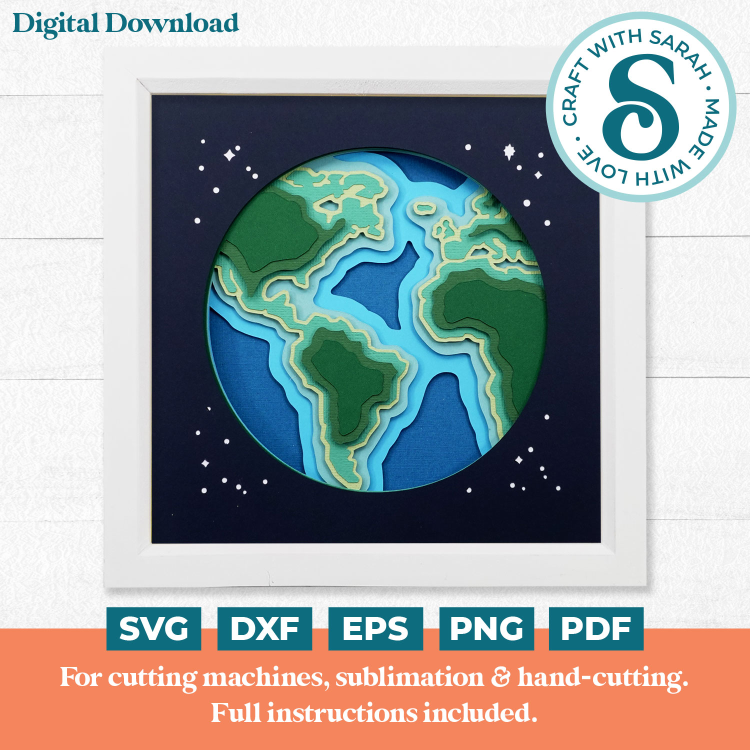 A layered cutting file of a planet Earth shadow box.