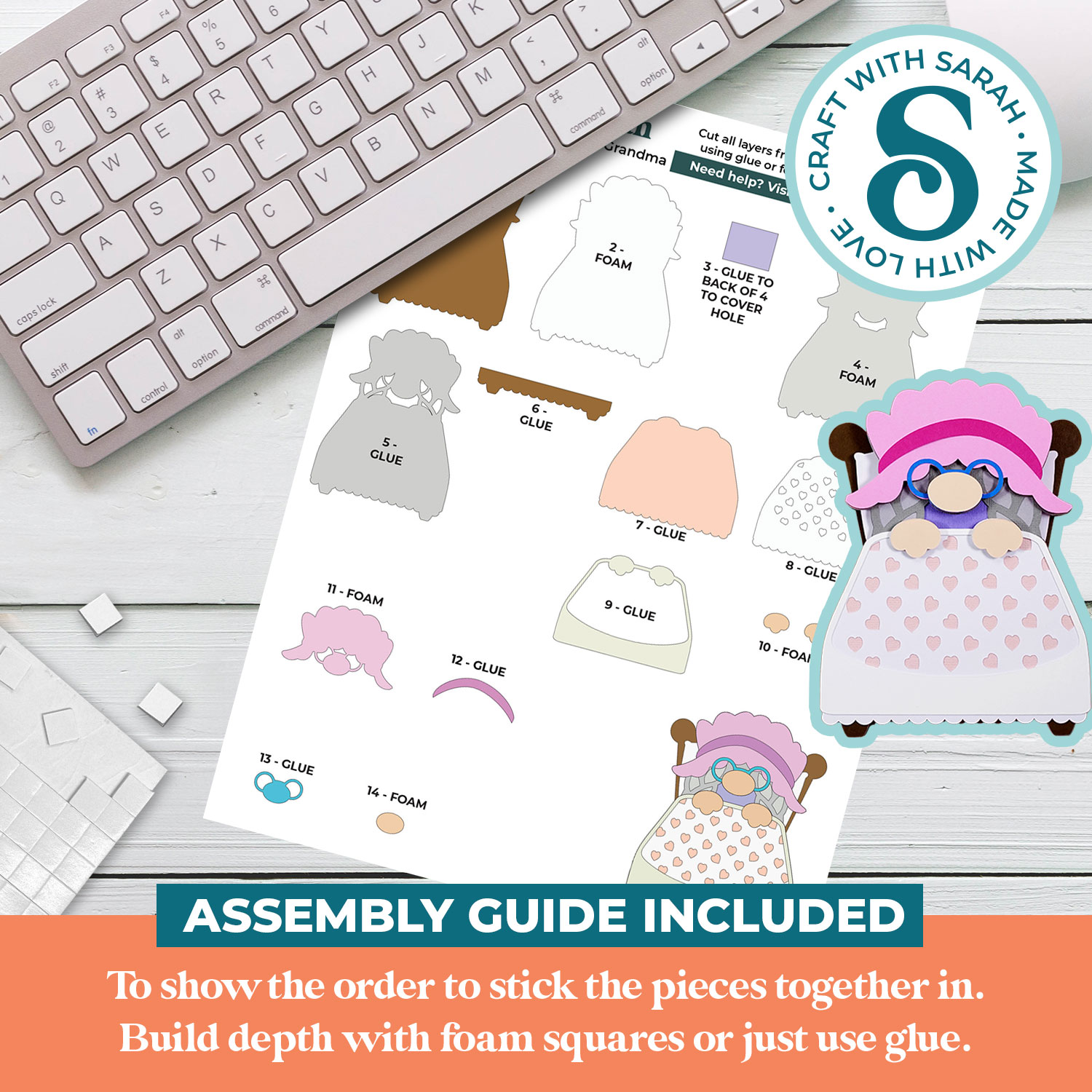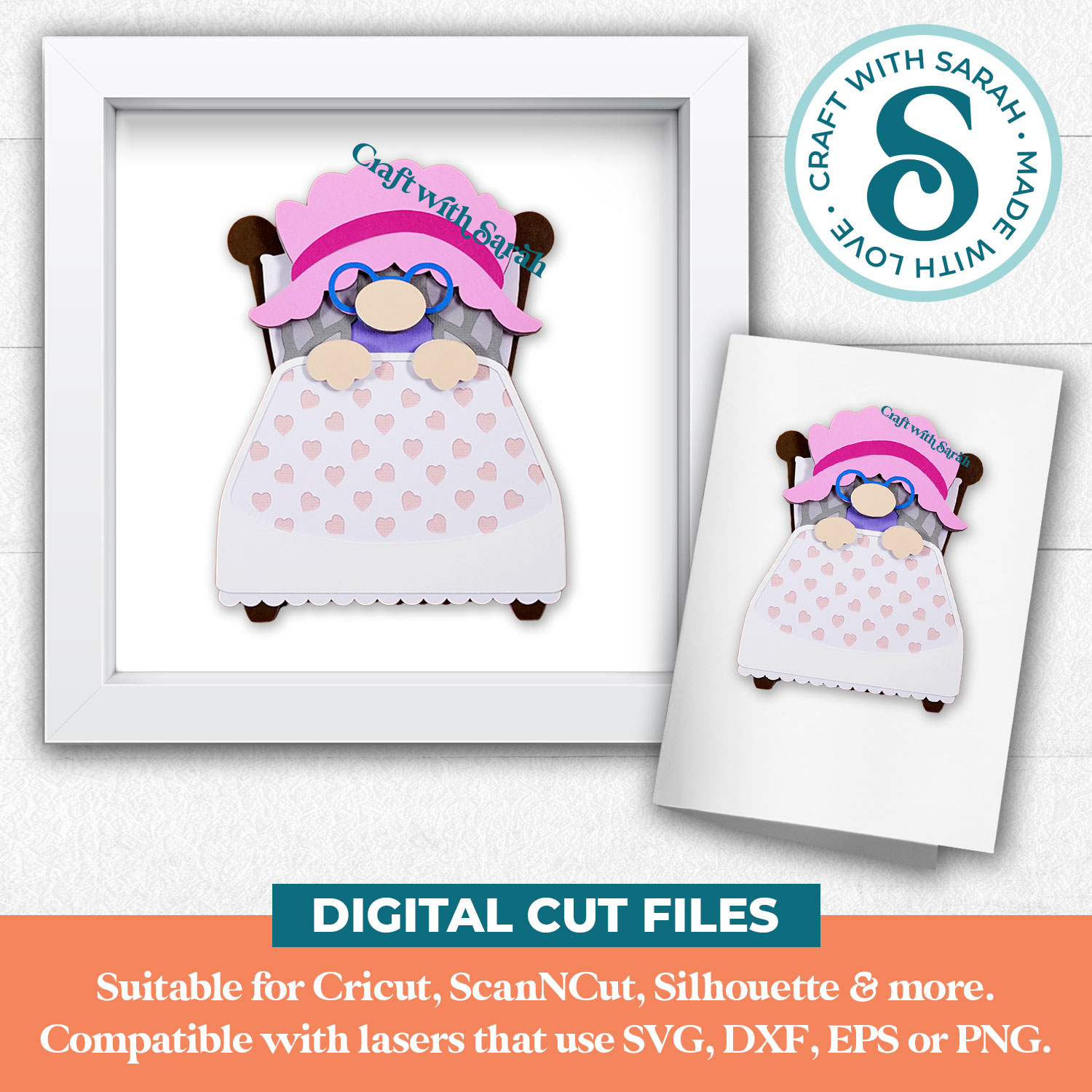 A layered cutting file of a cute gnome version of the Grandma (or Granny!) from Little Red Riding Hood.