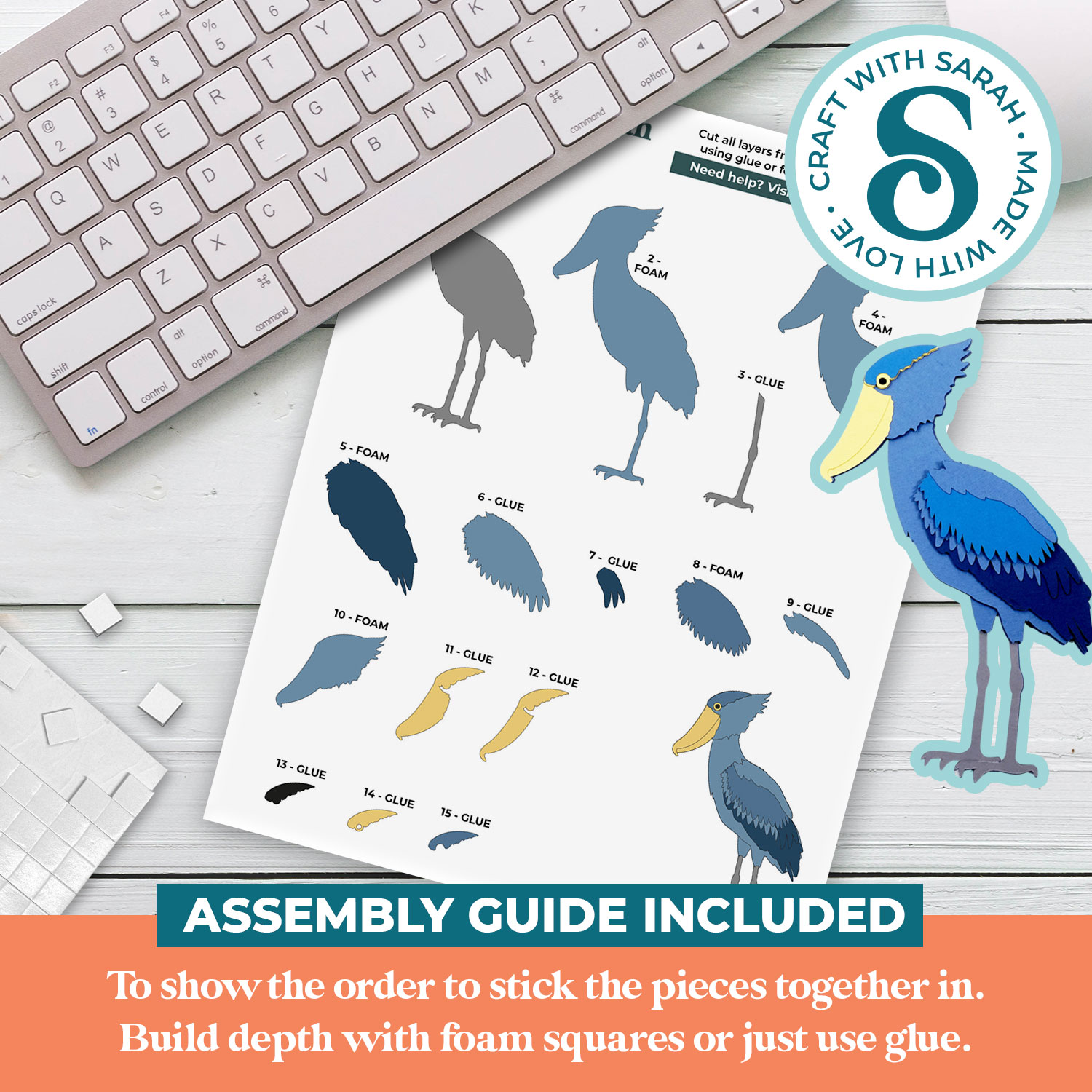 Printable PDF versions are included for hand-cutting, with each layer/piece shown separately on the pages. A black and white version and a full-color version of the hand-cutting templates are included.