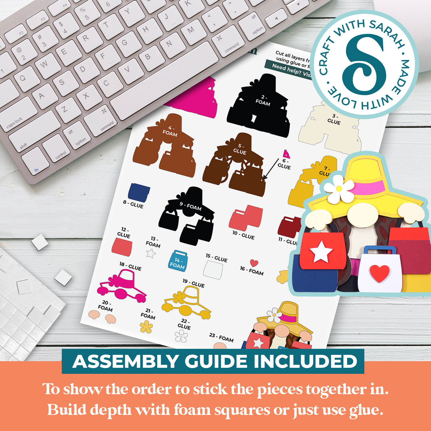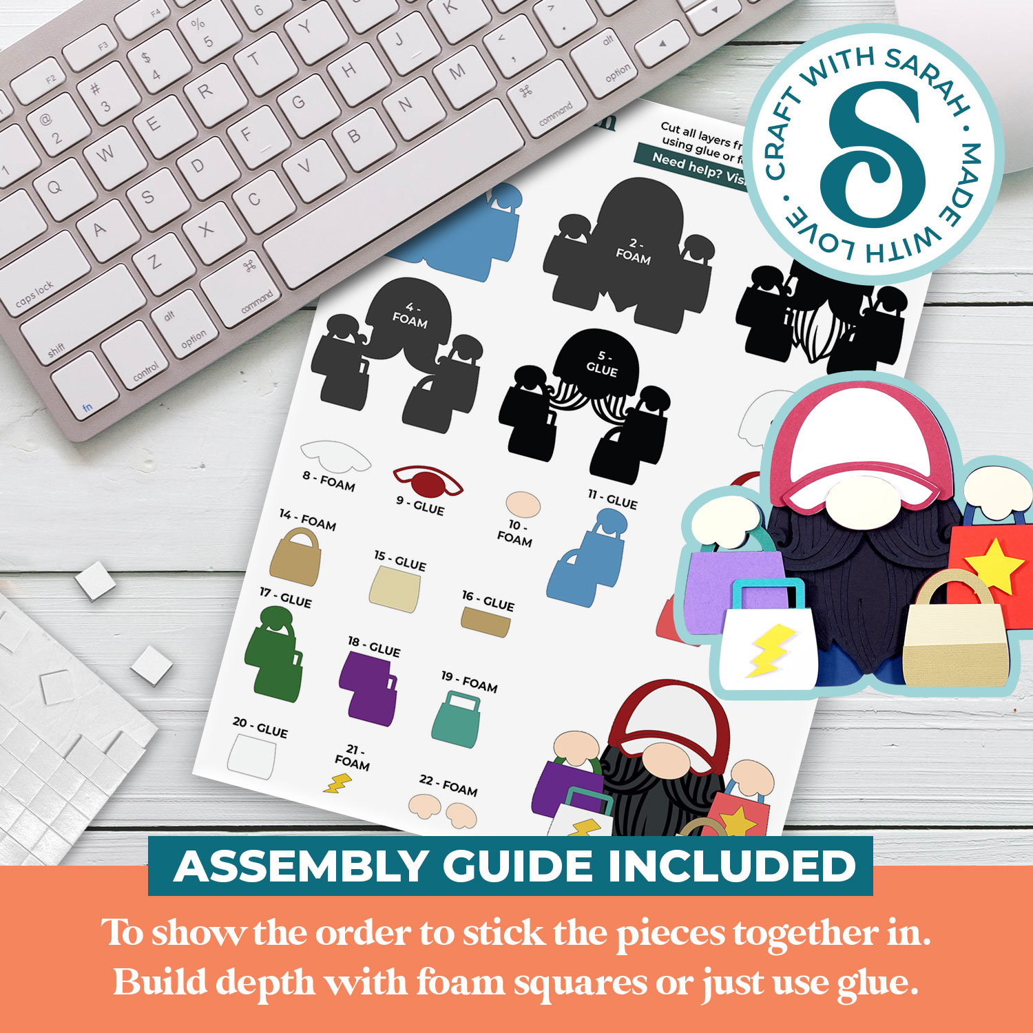 The Countdown contains 32 layered gnome SVGs covering a wide range of themes, plus 14 additional family portrait gnomes and 14 side-edge cards, making 60 adorable gnome SVGs in total!
