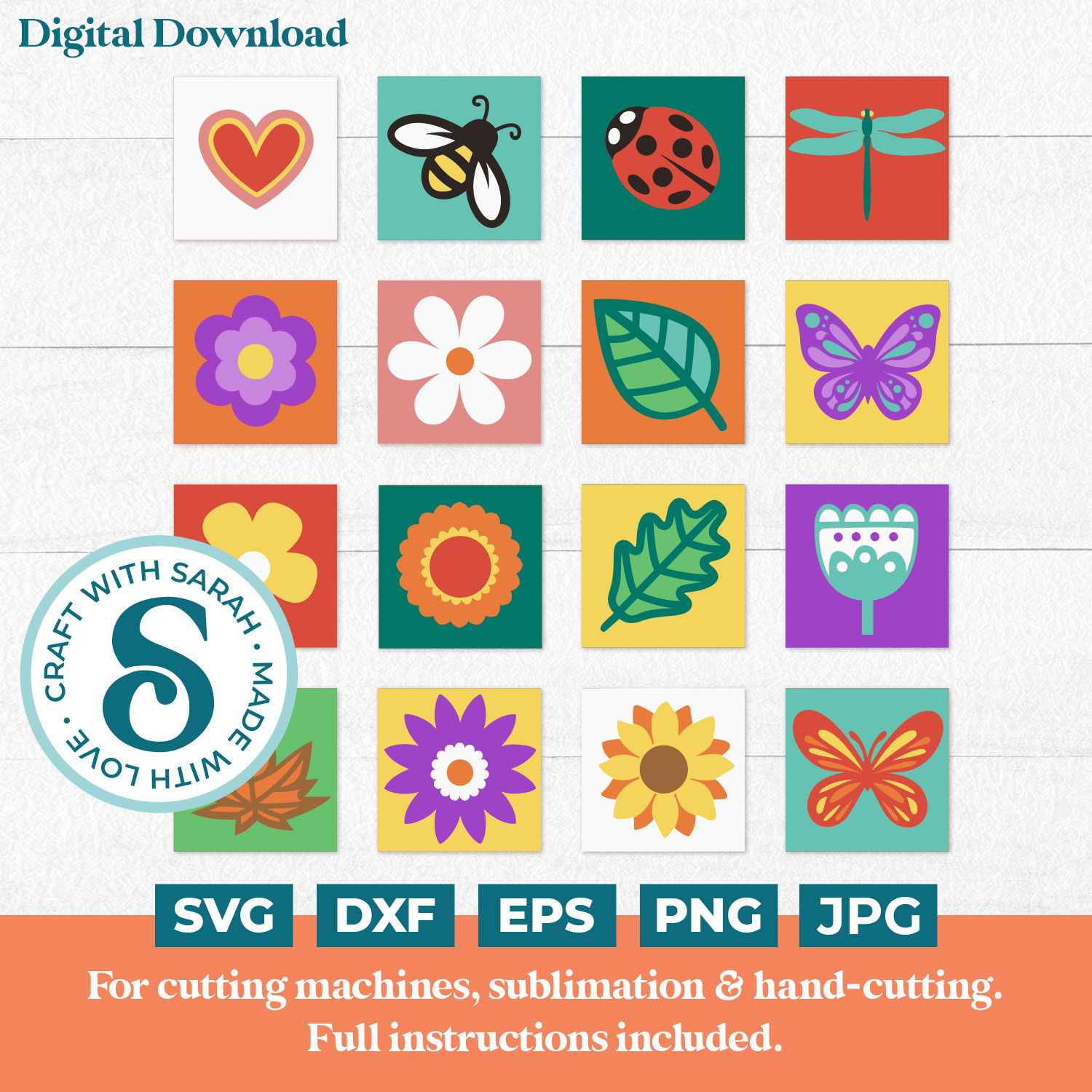 All Craft with Sarah customers have the opportunity to join my customer-only Facebook group where you can share your projects and get Cricut and Design Space help, including monthly LIVE Design Space training. The product download folder contains the link to follow to join the group. This bonus is only included with paid products, not free downloads.