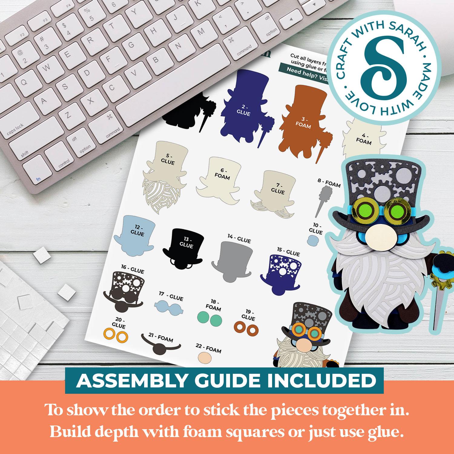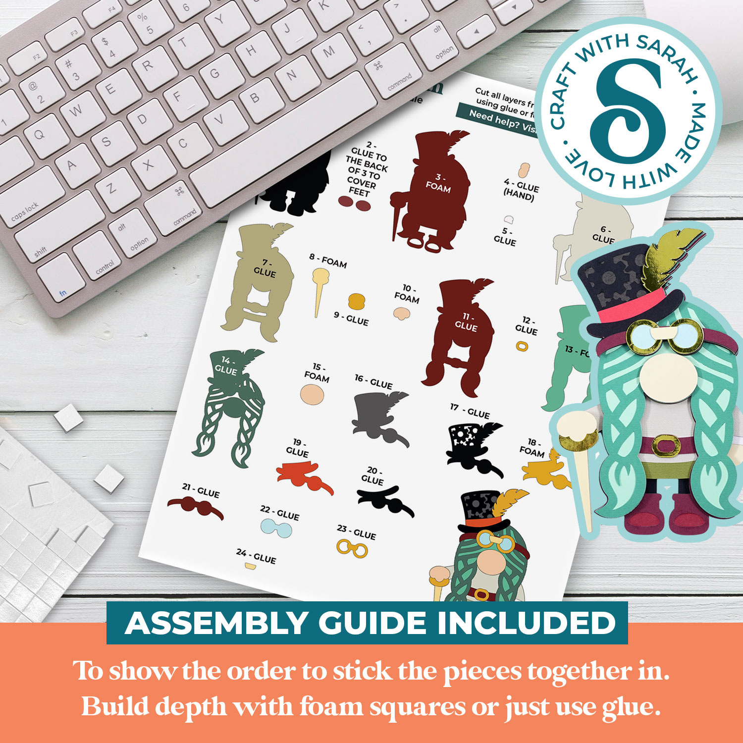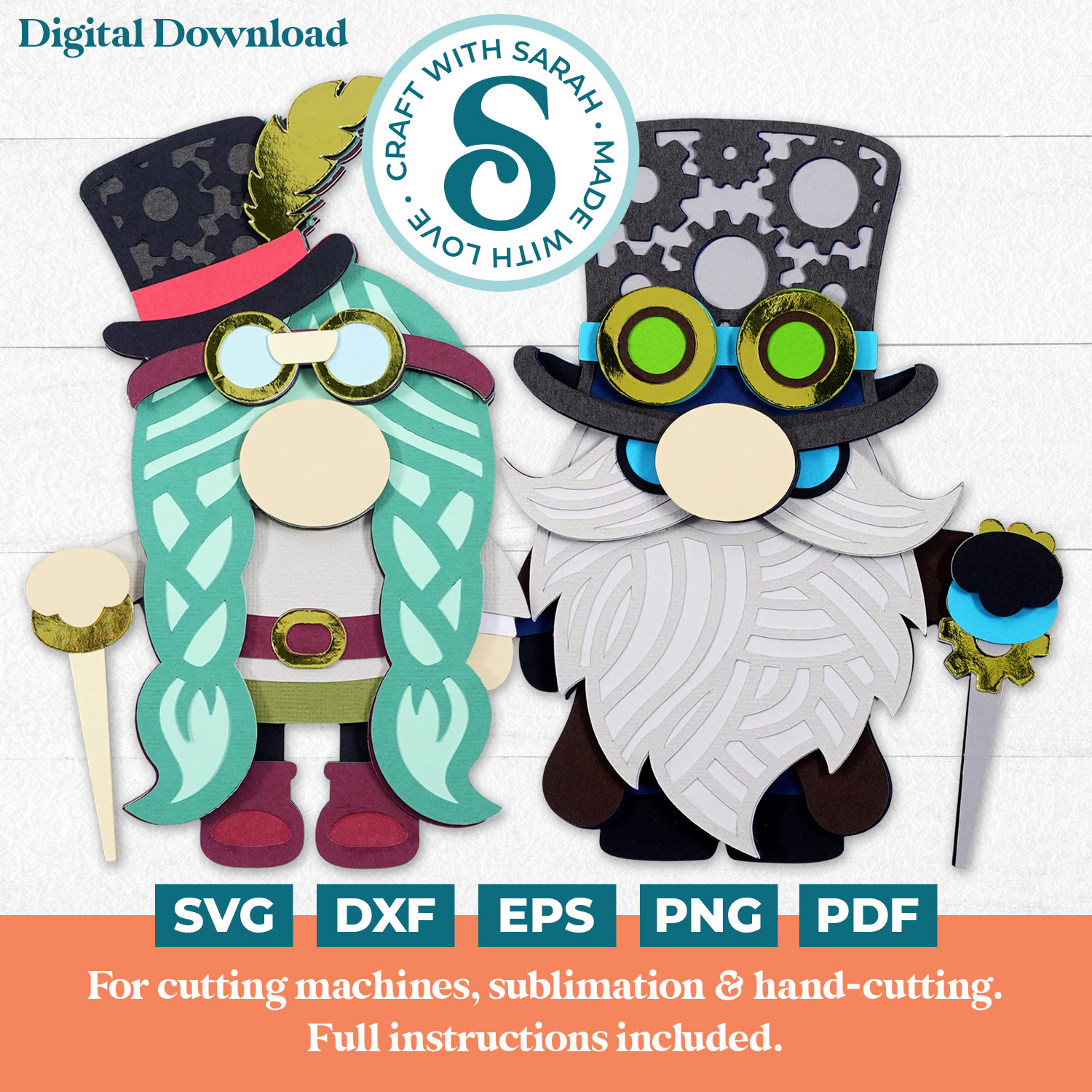A matching male and female pair of gnome cutting files with a Steampunk theme.