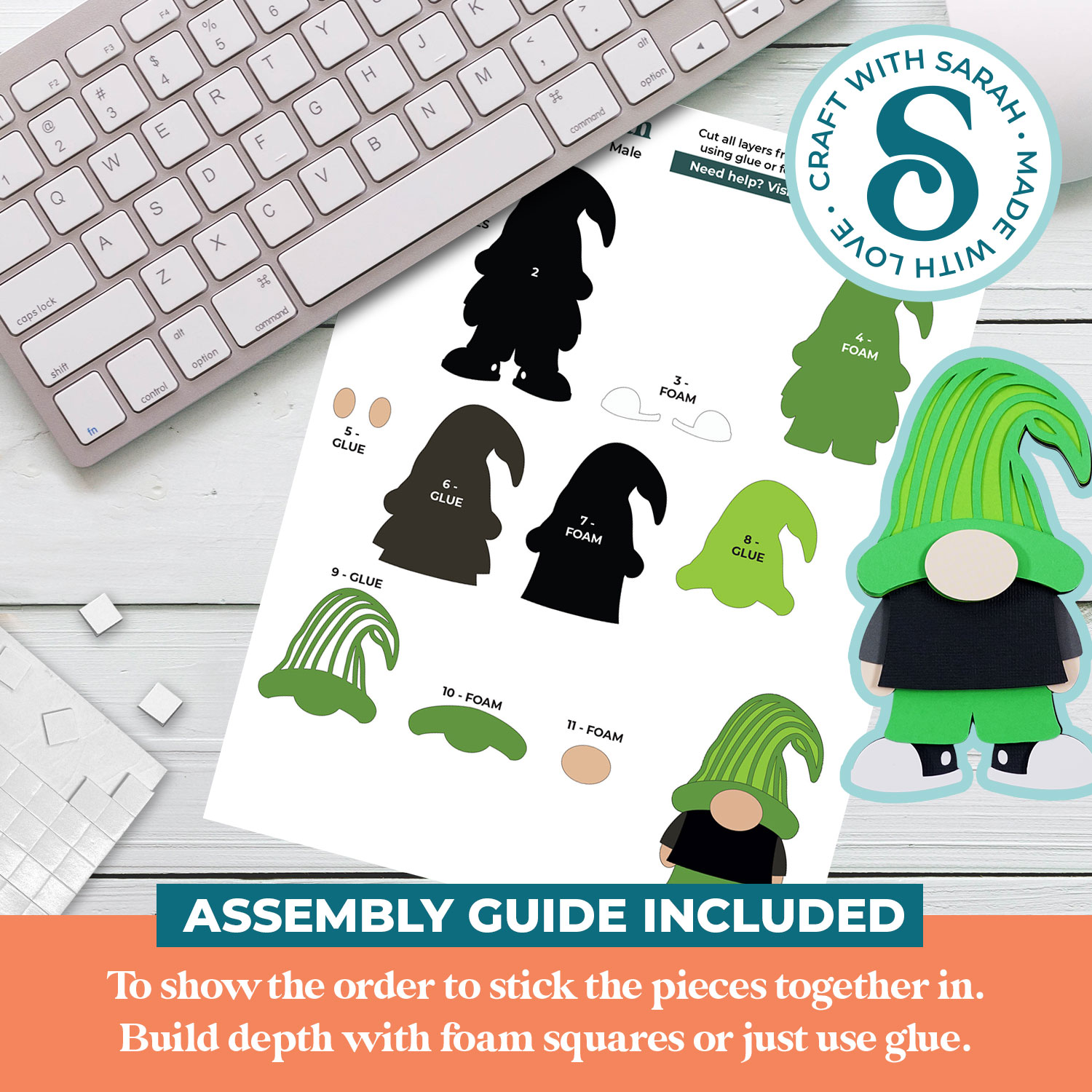 A layered cutting file of a teenage boy gnome, part of a whole family portrait series.