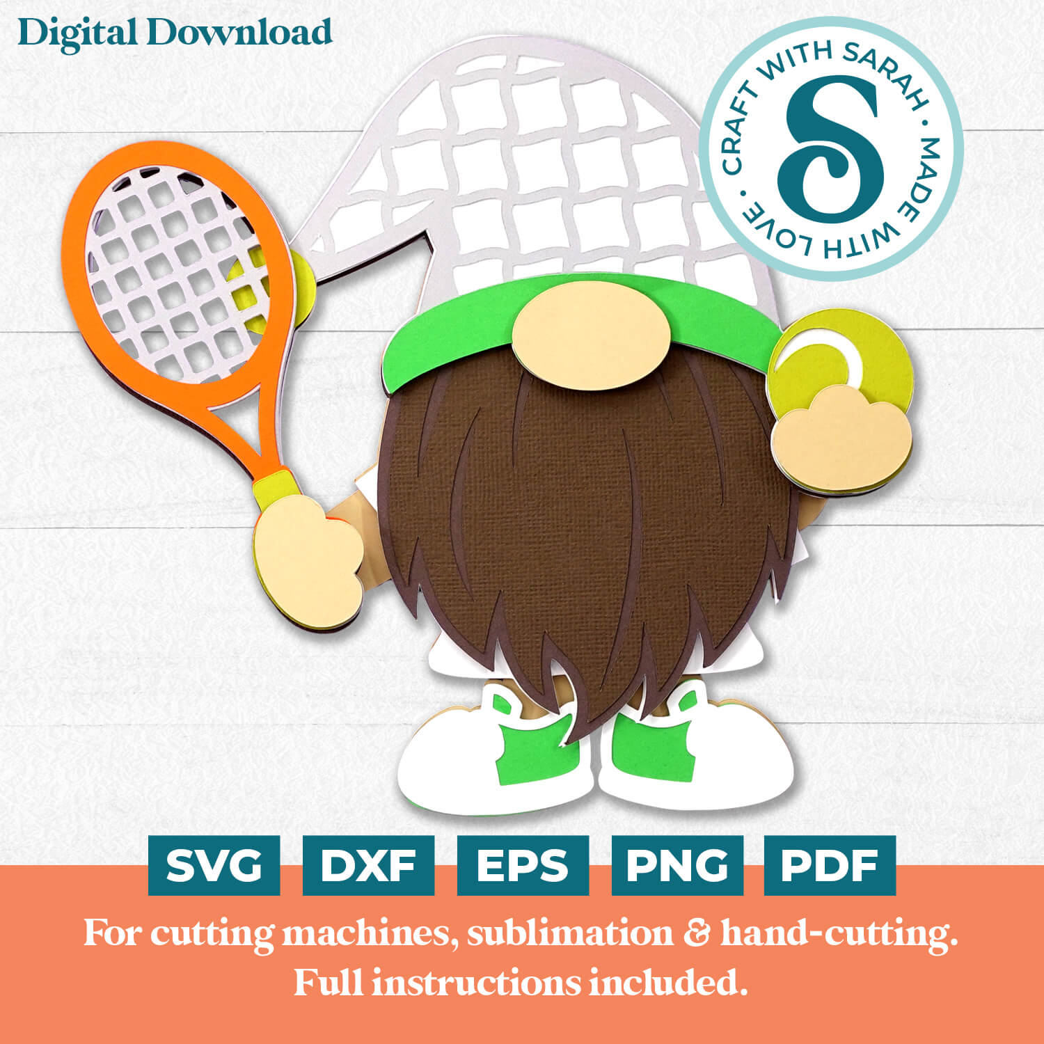 A layered cutting file of a male tennis gnome, also known as a gonk.