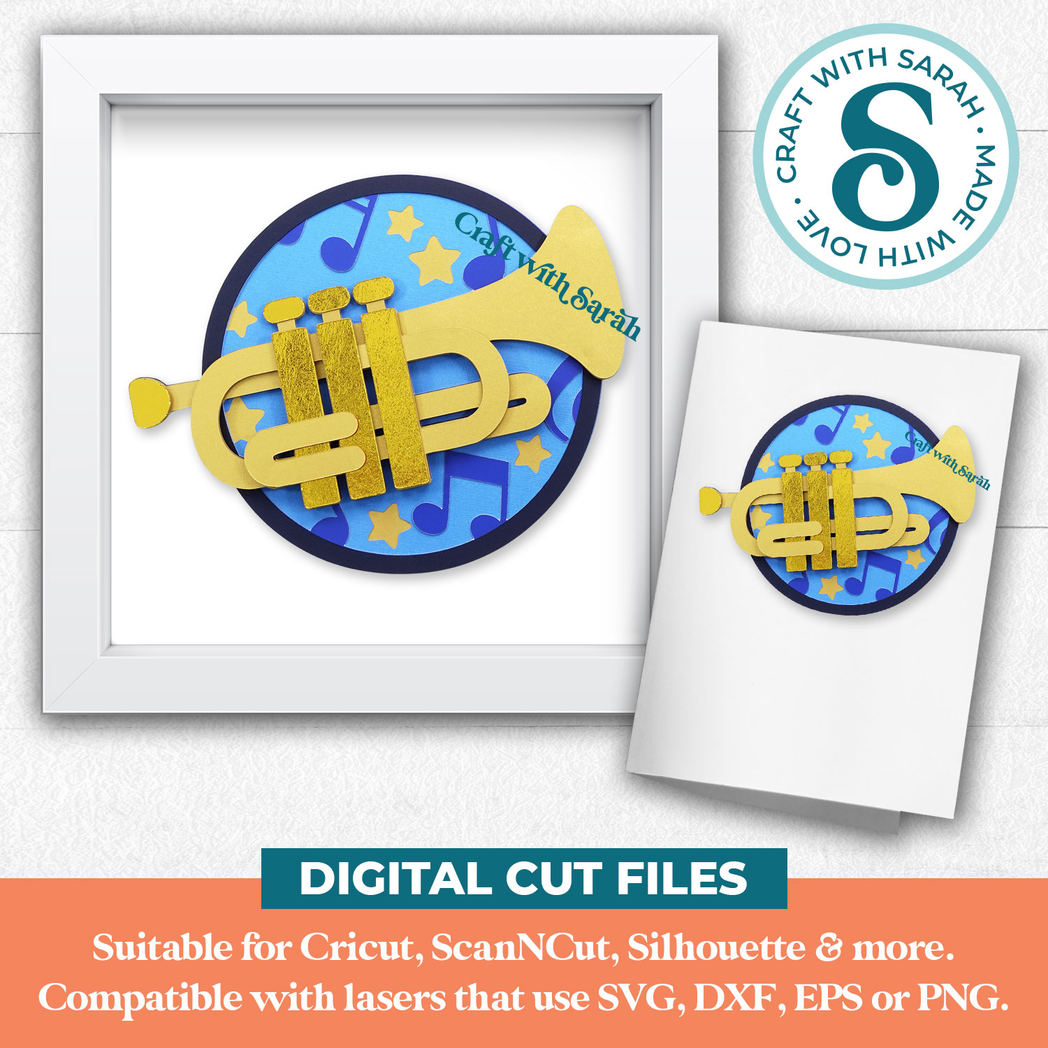 The circular background layers with the music notes and stars can be hidden from the cut files if you would prefer to cut the instrument on its own, without the background.
