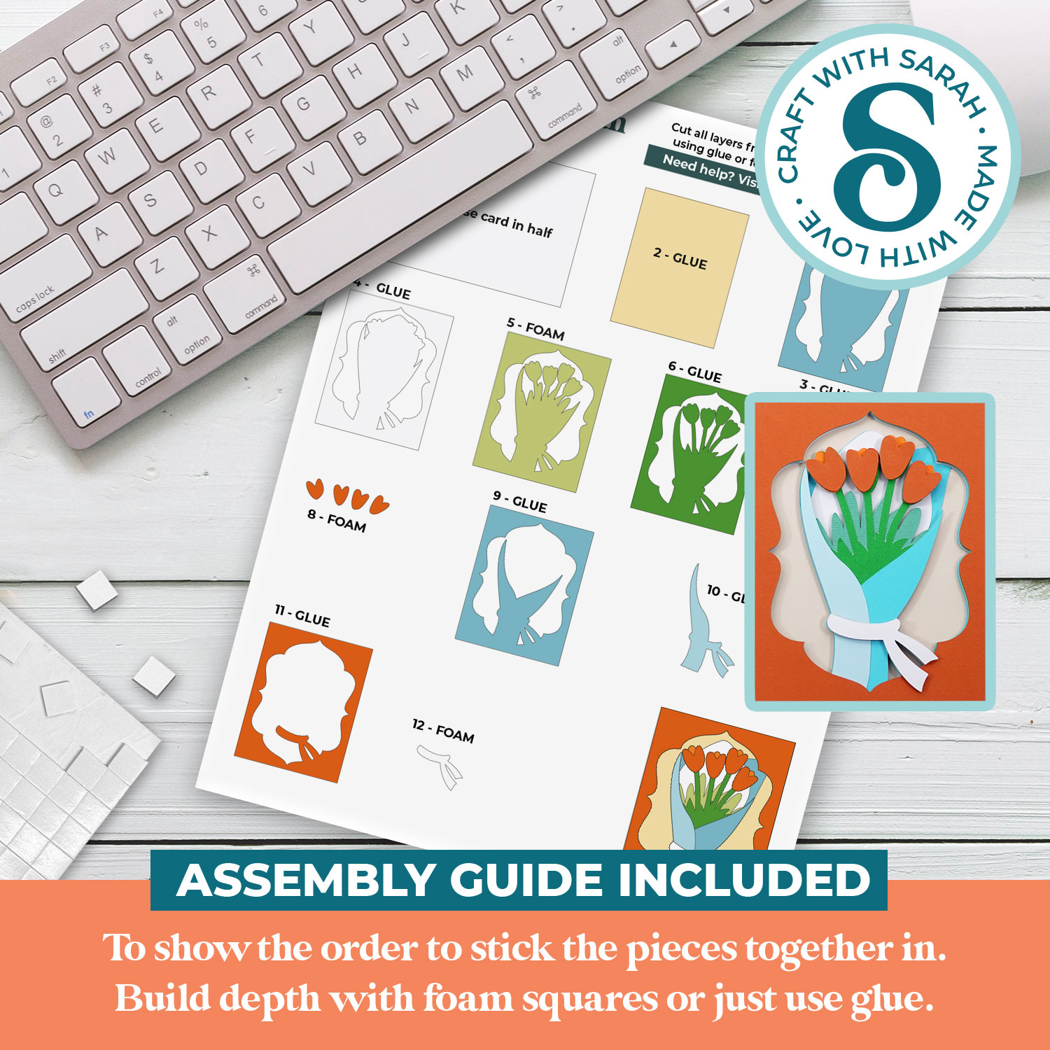A layered cutting file to make an A2 card with a tulips bouquet theme.
