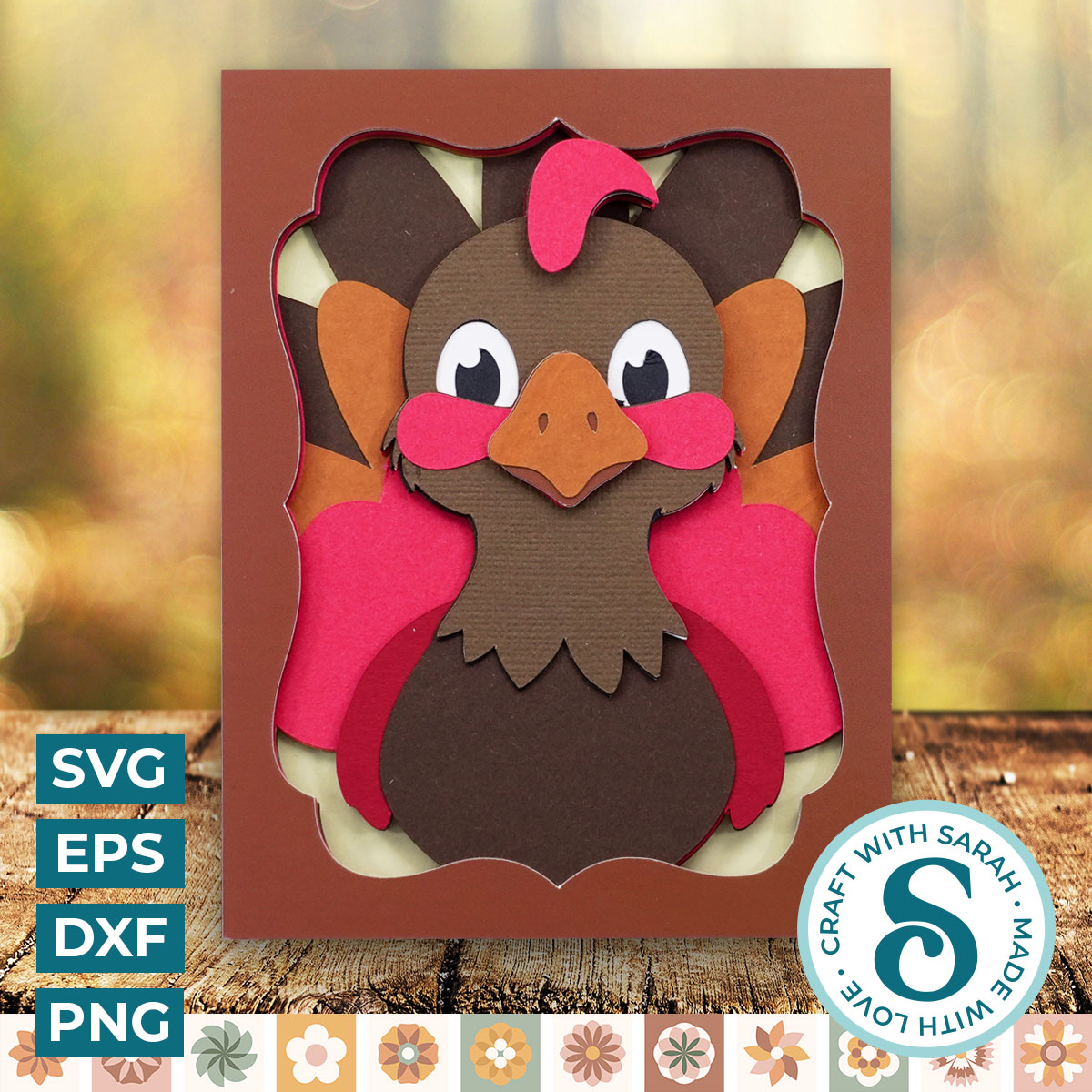 A layered cutting file to make an A2 card with a Thanksgiving theme.