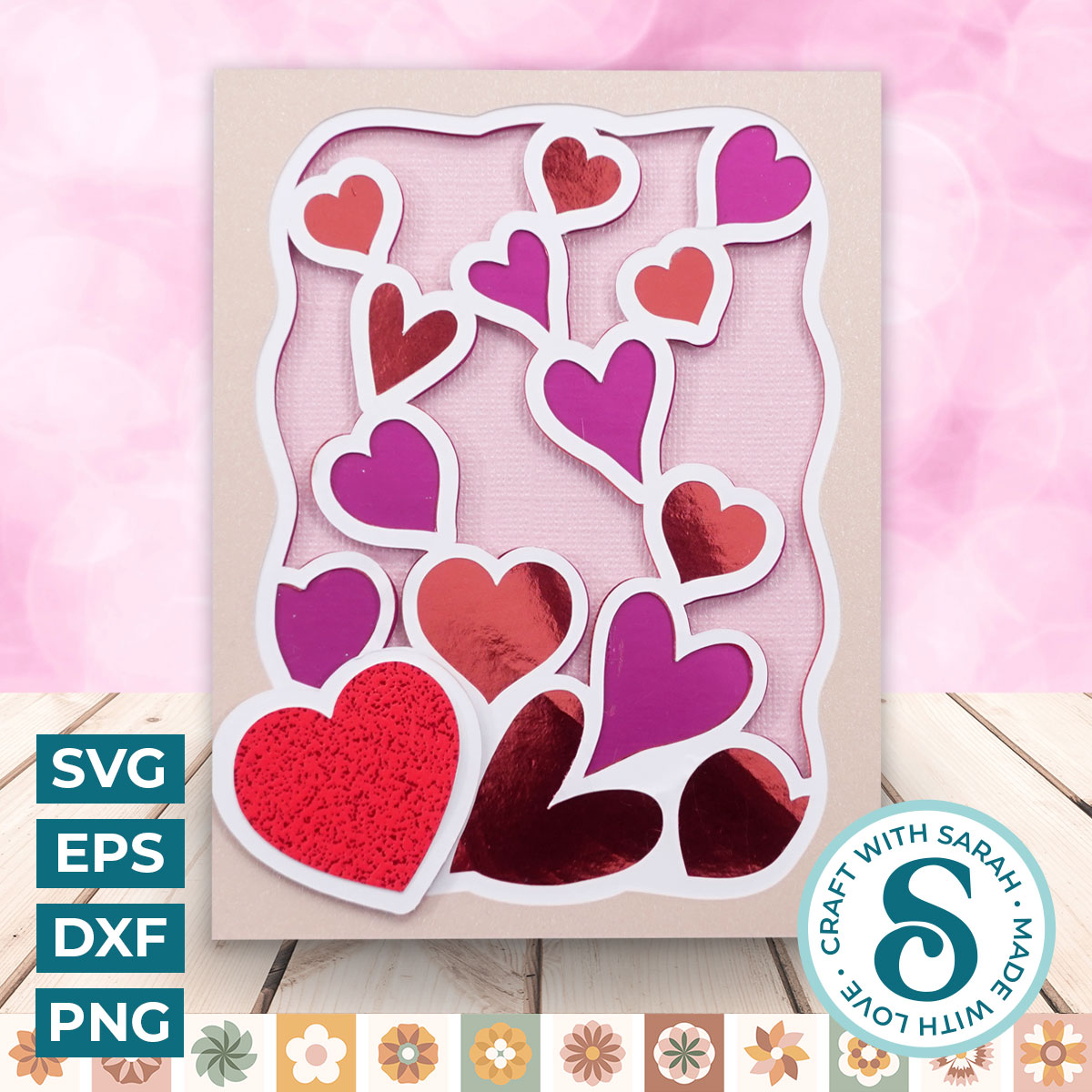 A layered cutting file to make an A2 card for Valentine’s Day.